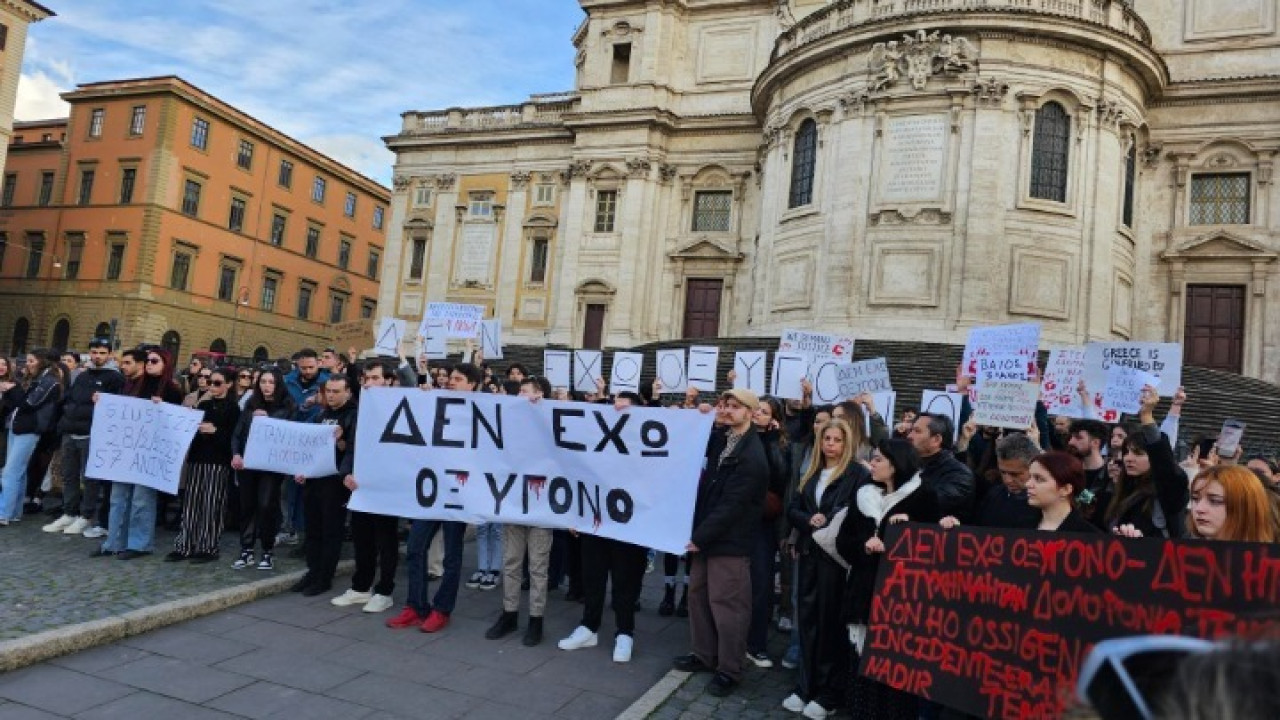 Πάνω από εκατόν πενήντα άνθρωποι συμμετείχαν, σήμερα το απόγευμα, στην πλατεία Εσκουιλίνο της Ρώμης, σε συγκέντρωση για τα δυο χρόνια από την τραγωδία των Τεμπών.