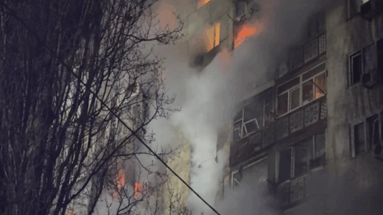 russian terrorists are attacking the city. A Shahed hits a high-rise building.