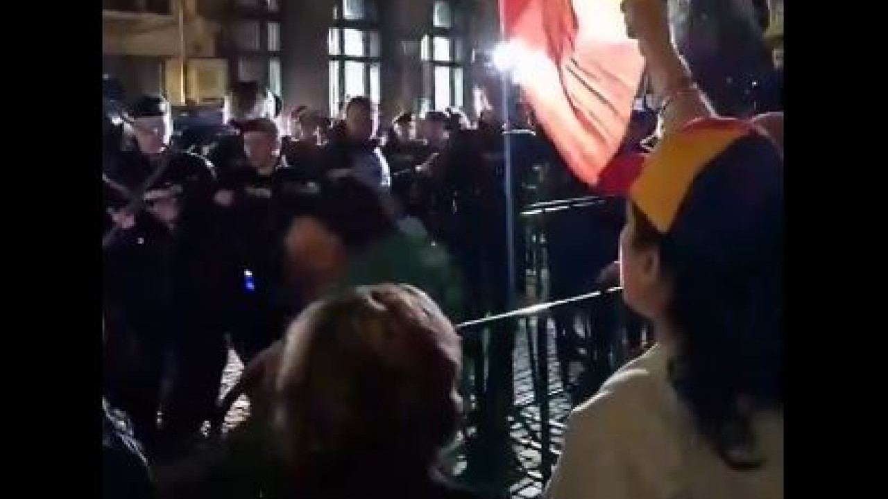«Έπειτα από απόφαση του Εκλογικού Γραφείου, διαδηλωτές έσπασαν τον κλοιό των χωροφυλάκων επιχειρώντας να μπουν μέσα στο κτίριο», ανέφεραν οι δυνάμεις της τάξης διευκρινίζοντας στη συνέχεια ότι η κατάσταση είναι «υπό έλεγχο».