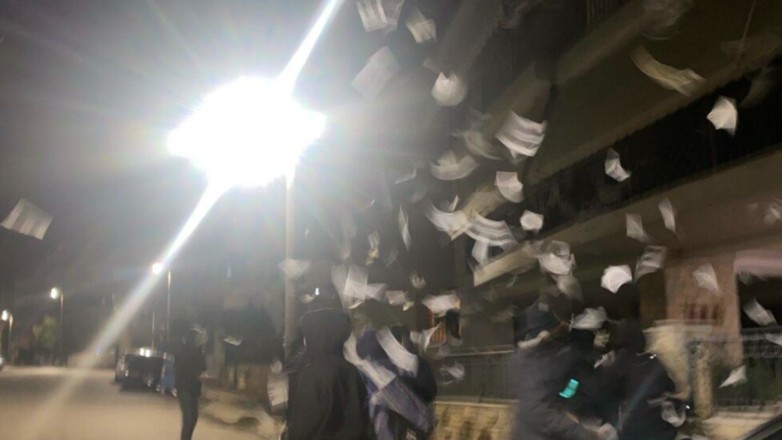 Τα μέλη της φοιτητικής ομάδας πέταξαν τρικάκια, ανάρτησαν πανό και έγραψαν συνθήματα στους τοίχους, ενάντια στα ιδιωτικά πανεπιστήμια