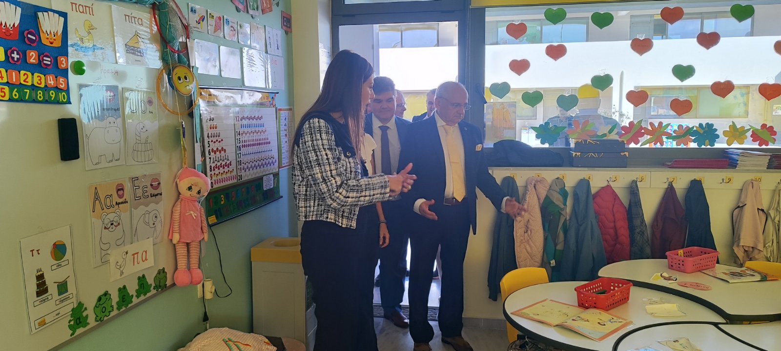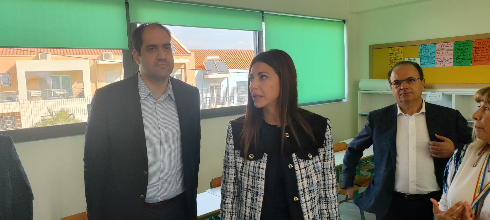 Μετά την επίσκεψή της στο 1ο Ειδικό Δημοτικό Σχολείο όπου η Υπουργός ξεναγήθηκε στους χώρους του σχολικού συγκροτήματος και ενημερώθηκε για τις δράσεις που υλοποιούνται, βρέθηκε στο 16ο Δημοτικό Σχολείο, μια νέα σύγχρονη σχολική μονάδα που εγκαινιάστηκε πέρυσι.