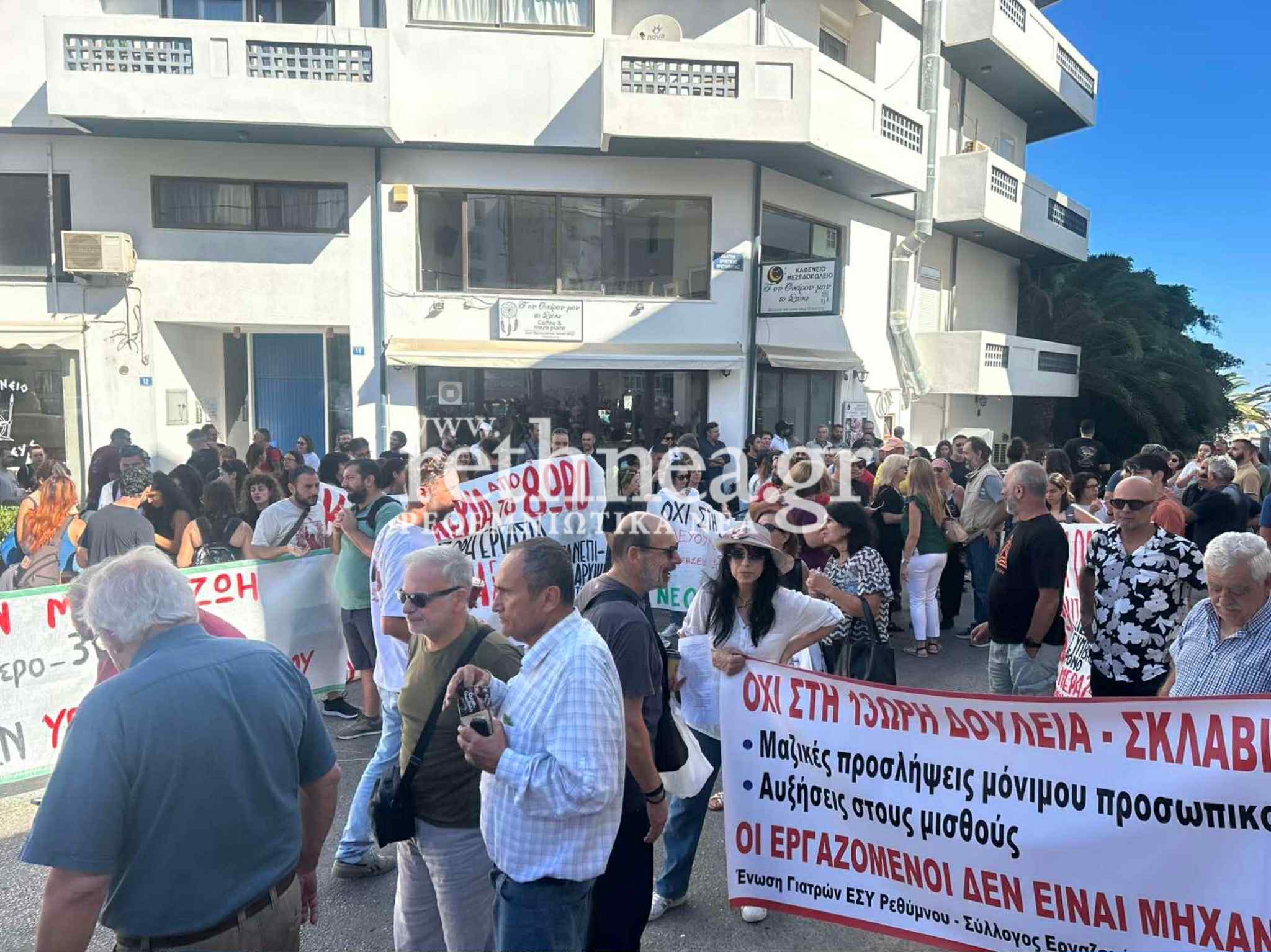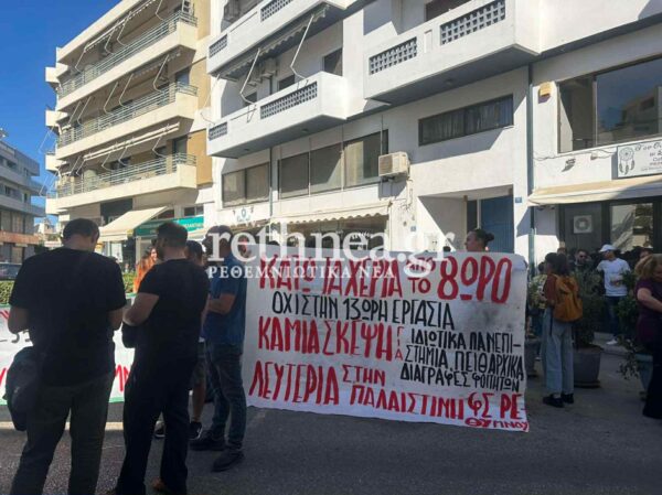 Απεργιακή συγκέντρωση διαμαρτυρίας πραγματοποιείται αυτήν την ώρα και έξω από το Εργατικό Κέντρο Ρεθύμνου, με τη συμμετοχή εργαζομένων, ανέργων και συνταξιούχων. Στην απεργία συμμετέχουν μεταξύ άλλων υγειονομικοί, εκπαιδευτικοί και φοιτητές.