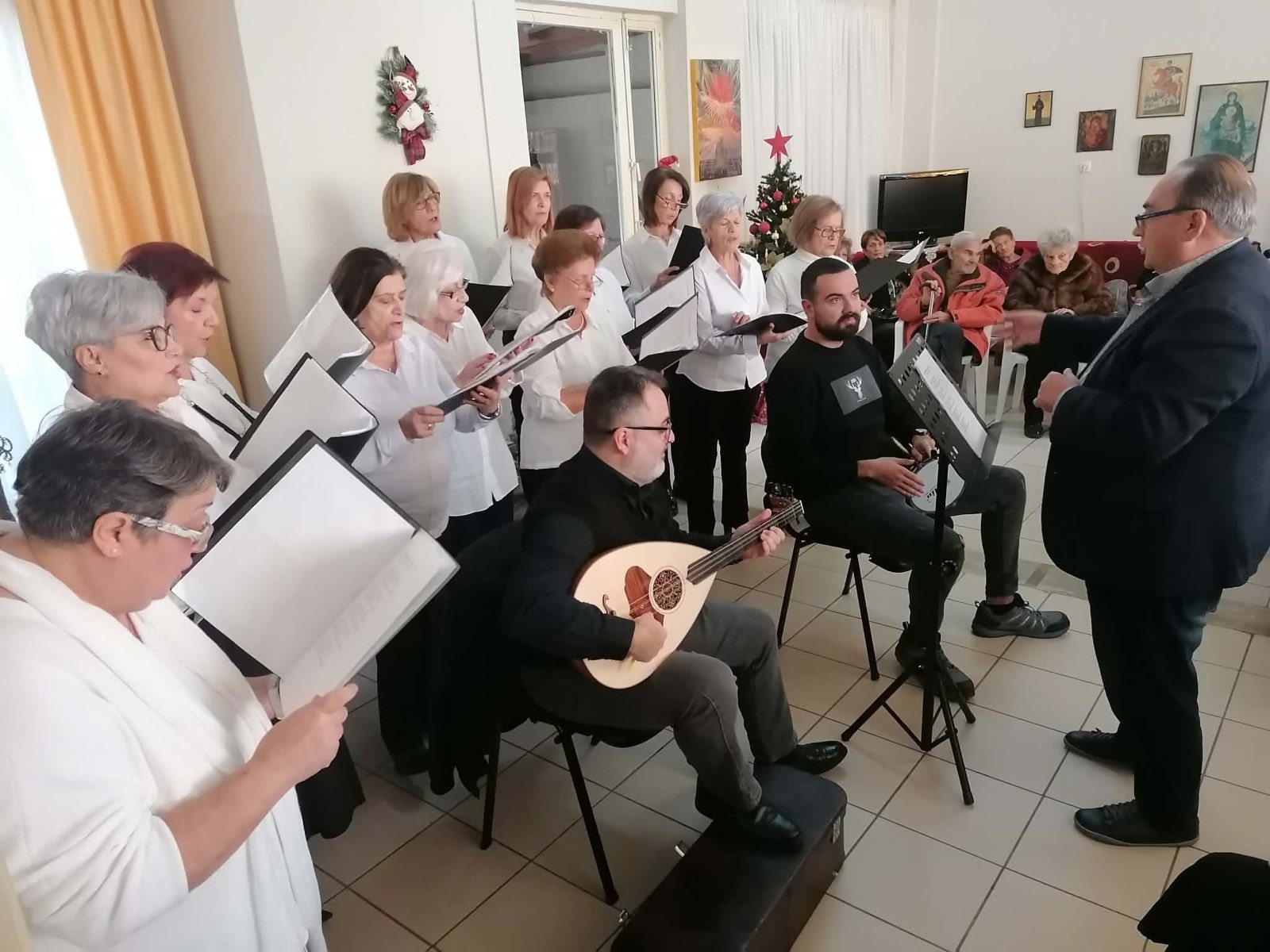 Η Χορωδία του Κέντρου έψαλε επίκαιρους ύμνους και τραγούδησε παραδοσιακά Χριστουγεννιάτικα Κάλαντα, μεταφέροντας το πνεύμα των ημερών, της αγάπης, της προσφοράς και της ανθρώπινης ζεστασιάς στους παρευρισκόμενους. Τη χορωδία διεύθυνε ο κ. Αντώνιος Πλαΐτης, Άρχοντας Υμνωδός της ΜτΧΕ και Πρωτοψάλτης του Ιερού Μητροπολιτικού Ναού Αγίου Μηνά Ηρακλείου, ενώ τα κάλαντα συνόδευσαν με παραδοσιακά όργανα οι μουσικοί κ. Μιχάλης Κώτης και κ. Μανόλης Δερμιτζάκης.