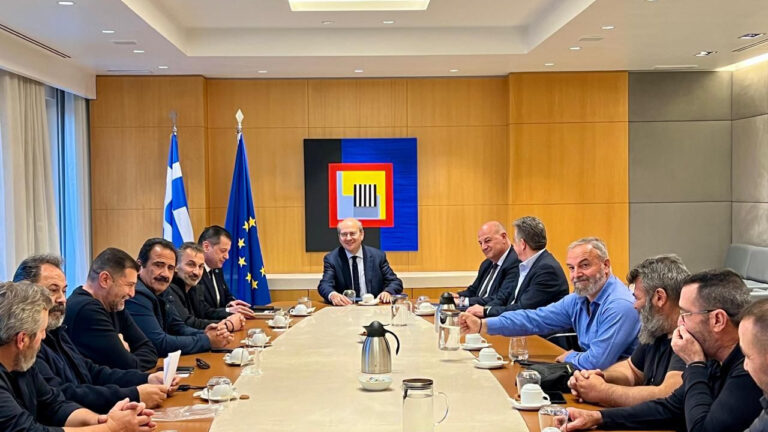 Η συγκεκριμένη συνάντηση με τους αγρότες από την Κρήτη ξεκίνησε στις 5 το απόγευμα στο Μέγαρο Μποδοσάκη και σε αυτήν συμμετέχει επίσης ο περιφερειάρχης Σταύρος Αρναουτάκης.