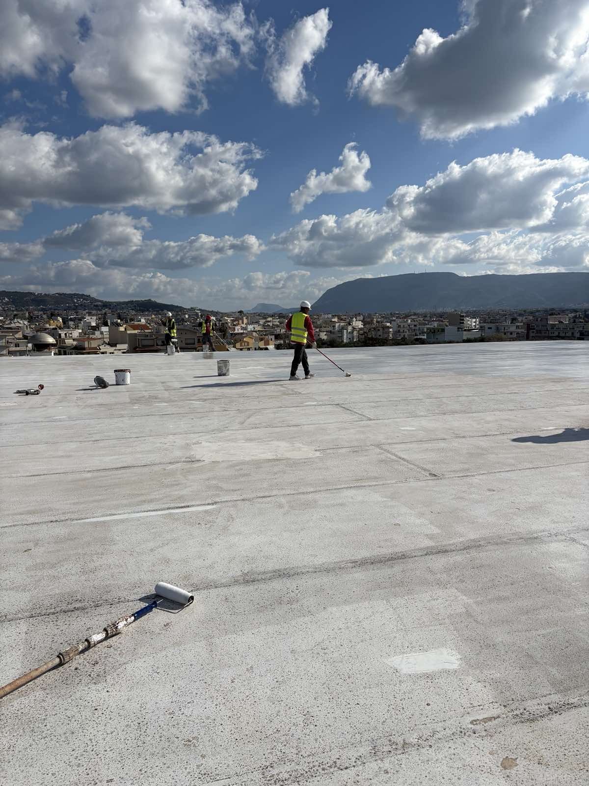 Η παρέμβαση, που έχει ήδη ολοκληρωθεί κατά το ήμισυ, προϋπέθετε την ύπαρξη κατάλληλων καιρικών συνθηκών, καθώς η εφαρμογή της μόνωσης απαιτούσε απολύτως στεγνό υπόστρωμα.