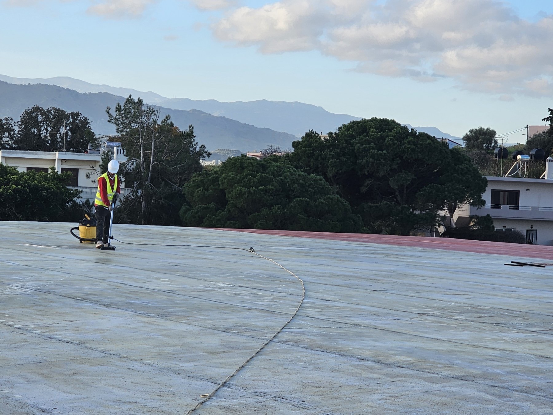 Η παρέμβαση, που έχει ήδη ολοκληρωθεί κατά το ήμισυ, προϋπέθετε την ύπαρξη κατάλληλων καιρικών συνθηκών, καθώς η εφαρμογή της μόνωσης απαιτούσε απολύτως στεγνό υπόστρωμα.