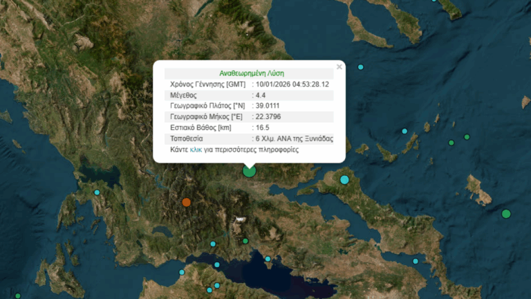 Σεισμική δόνηση 4,4 βαθμών της κλίμακας Ρίχτερ, καταγράφτηκε στις 06:53 το πρωί του Σαββάτου κοντά στη Λαμία.