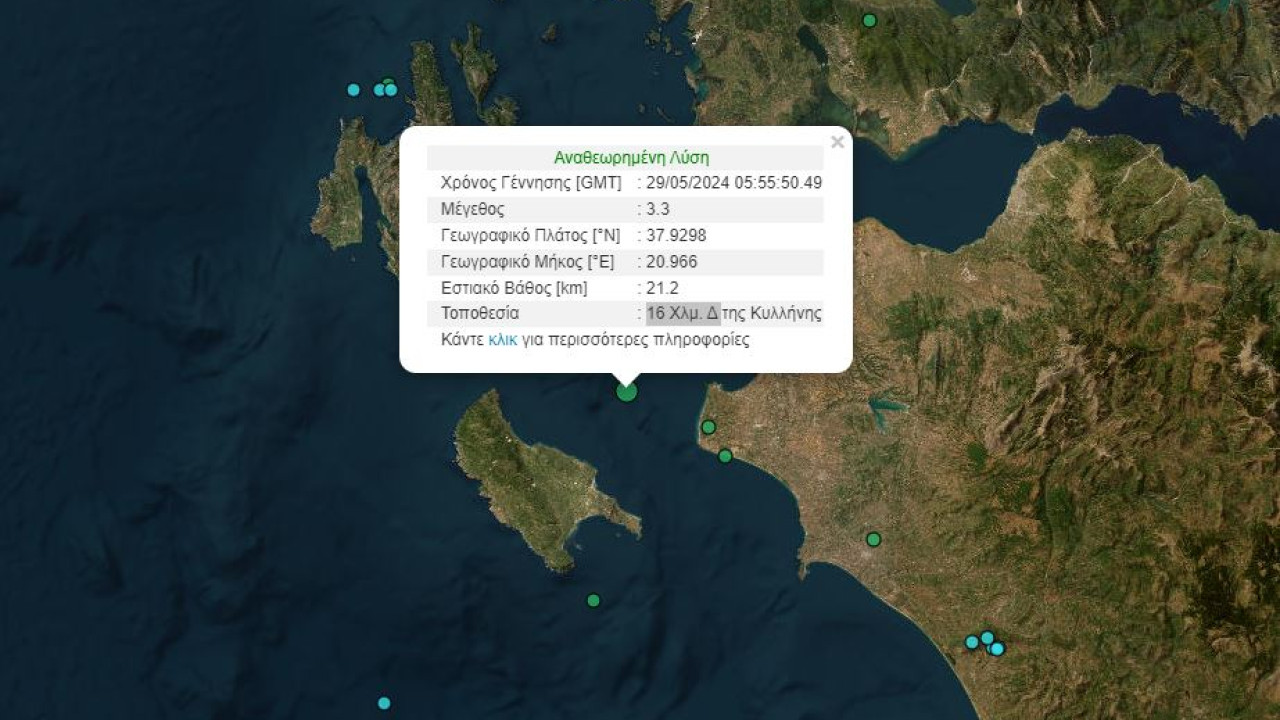 Ο σεισμός είχε επίκεντρο τη θαλάσσια περιοχή 16 Χλμ. δυτικά της Κυλλήνης και εστιακό βάθος 21 χιλιόμετρα.