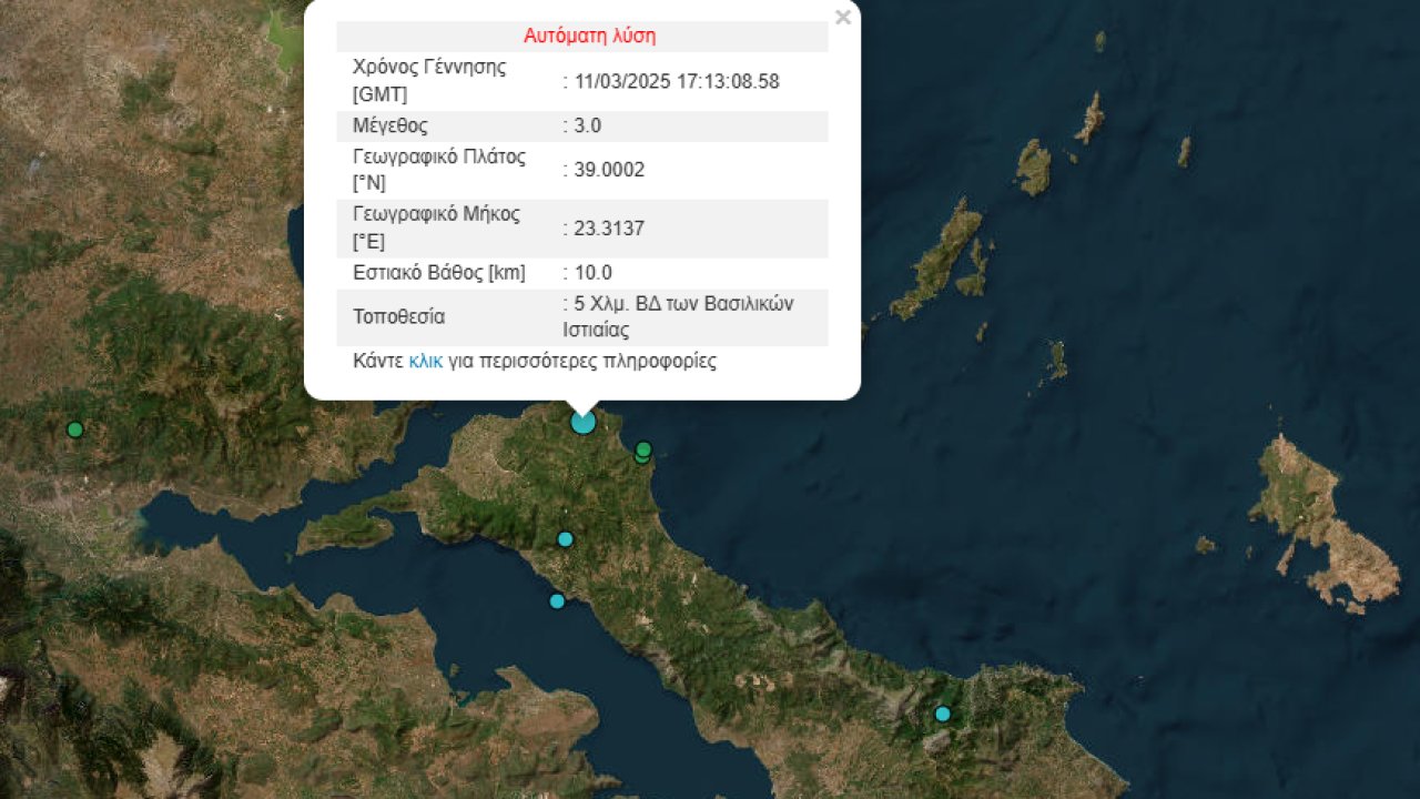 Ειδικότερα, ο σεισμός έλαβε χώρα 5 Χιλιόμετρα Βορειοδυτικά των Βασιλικών Ιστιαίας και σύμφωνα με την πρώτη εκτίμηση του Γεωδυναμικού Ινστιτούτου είχε εστιακό βάθος 10 χλμ.