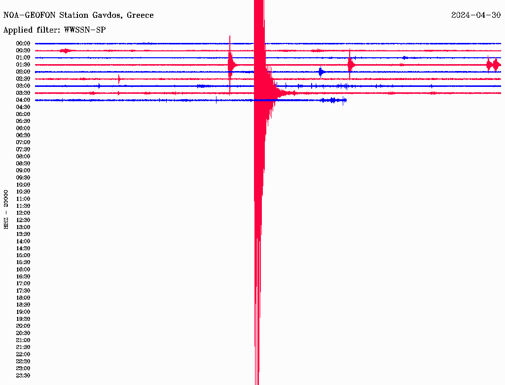 Δείτε πως κατέγραψε τον σεισμό ο σεισμογράφος του Σεισμολογικού Δικτύου του Γεωδυναμικού Ινστιτούτου του Εθνικού Αστεροσκοπείου Αθηνών, που είναι τοποθετημένος στη Γαύδο.