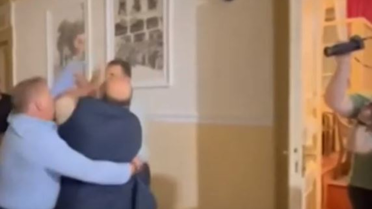 Στο τέλος όπως φαίνεται στο βίντεο πιάστηκαν στα χέρια έξω από την αίθουσα συνεδρίασης:
