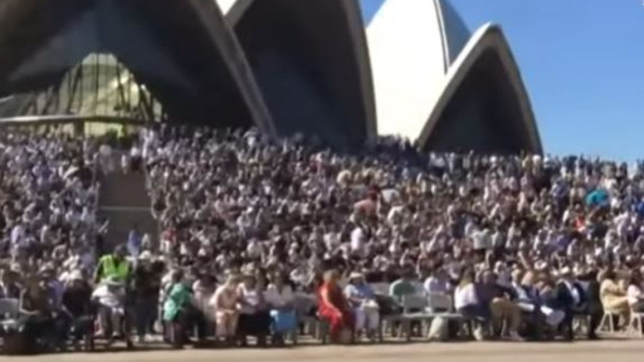 Κατά την άφιξη όλων των τμημάτων της παρέλασης στον χώρο της Όπερας, οι μαθητές και μαθήτριες των σχολείων της Ιεράς Αρχιεπισκοπής σκόρπισαν συγκίνηση και προκάλεσαν αισθήματα υπερηφάνειας και εθνικής ανατάσεως, καθώς έψαλαν τον Εθνικό Ύμνο της Ελλάδος, και εκείνον της Αυστραλίας.