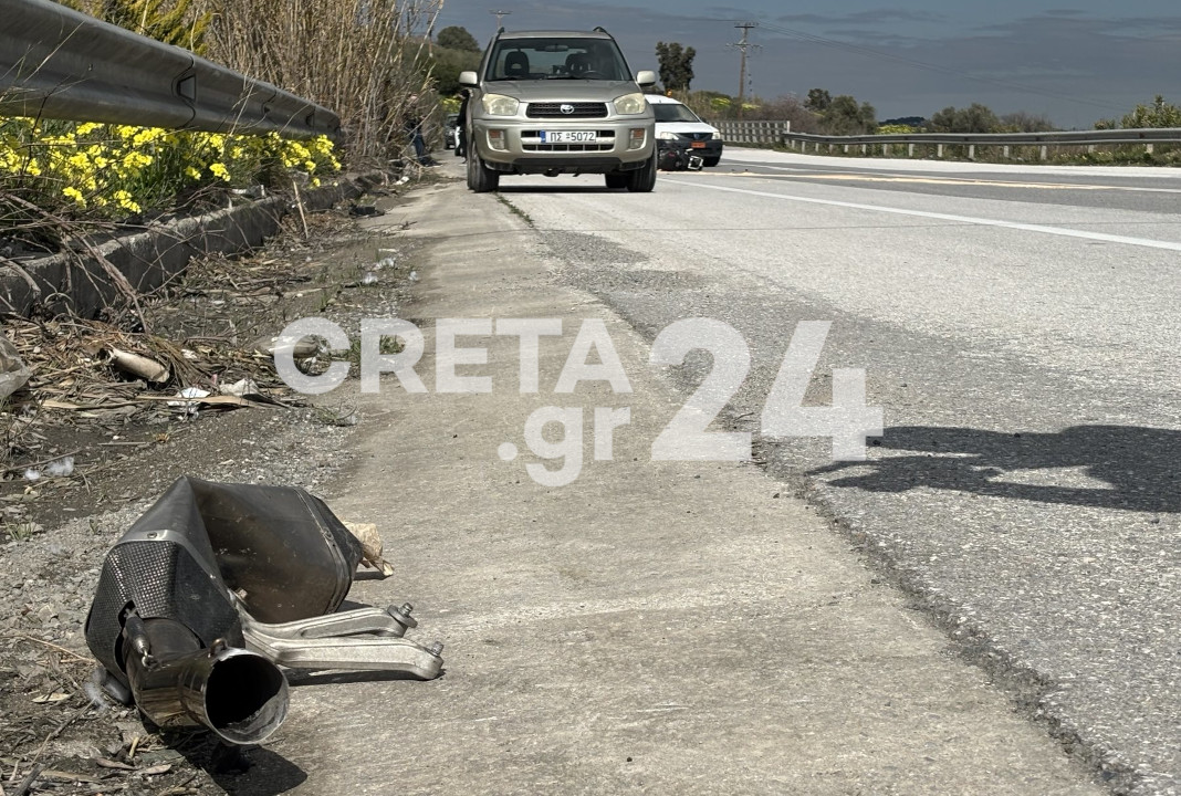 Αυτόπτες μάρτυρες που μίλησαν στο Creta24, ανέφεραν πως είδαν το πόδι του οδηγού της μηχανής σε μεγάλη απόσταση από το σώμα του.