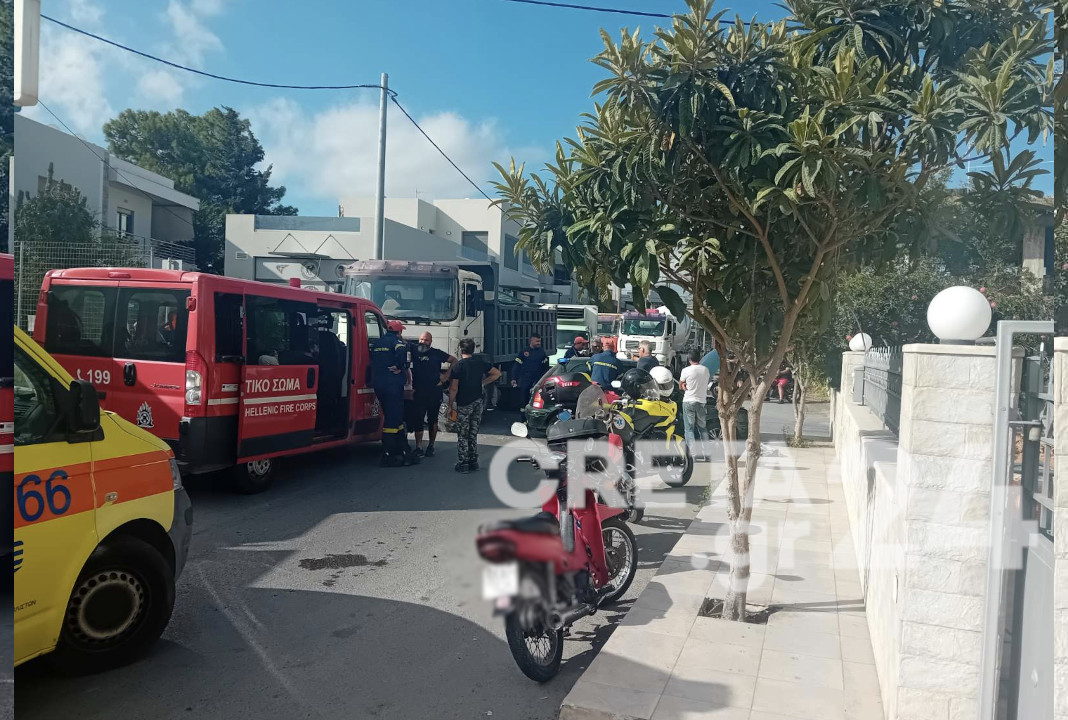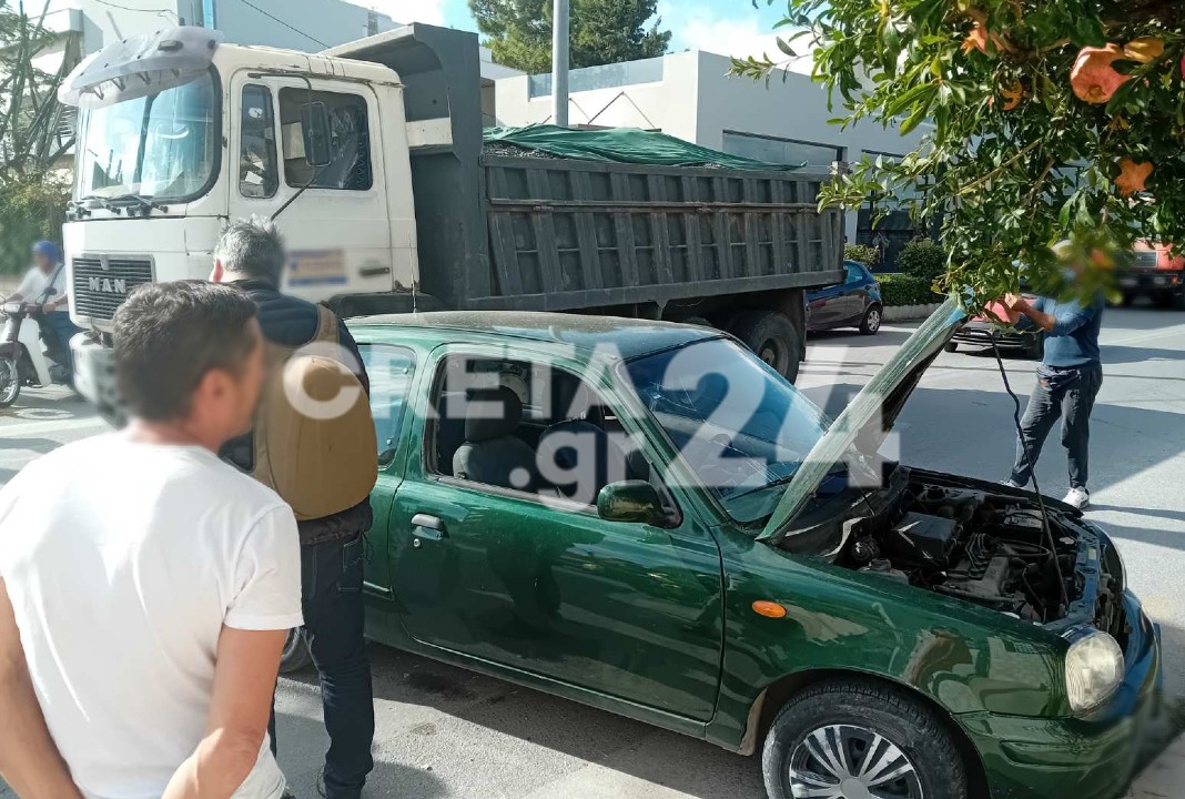 Το τροχαίο σημειώθηκε στη συμβολή των οδών Ερυθραίας και Σκουλά στην περιοχή των Μεσαμπελιών, όταν κάτω από αδιευκρίνιστες συνθήκες αυτοκίνητο συγκρούστηκε με φορτηγό.