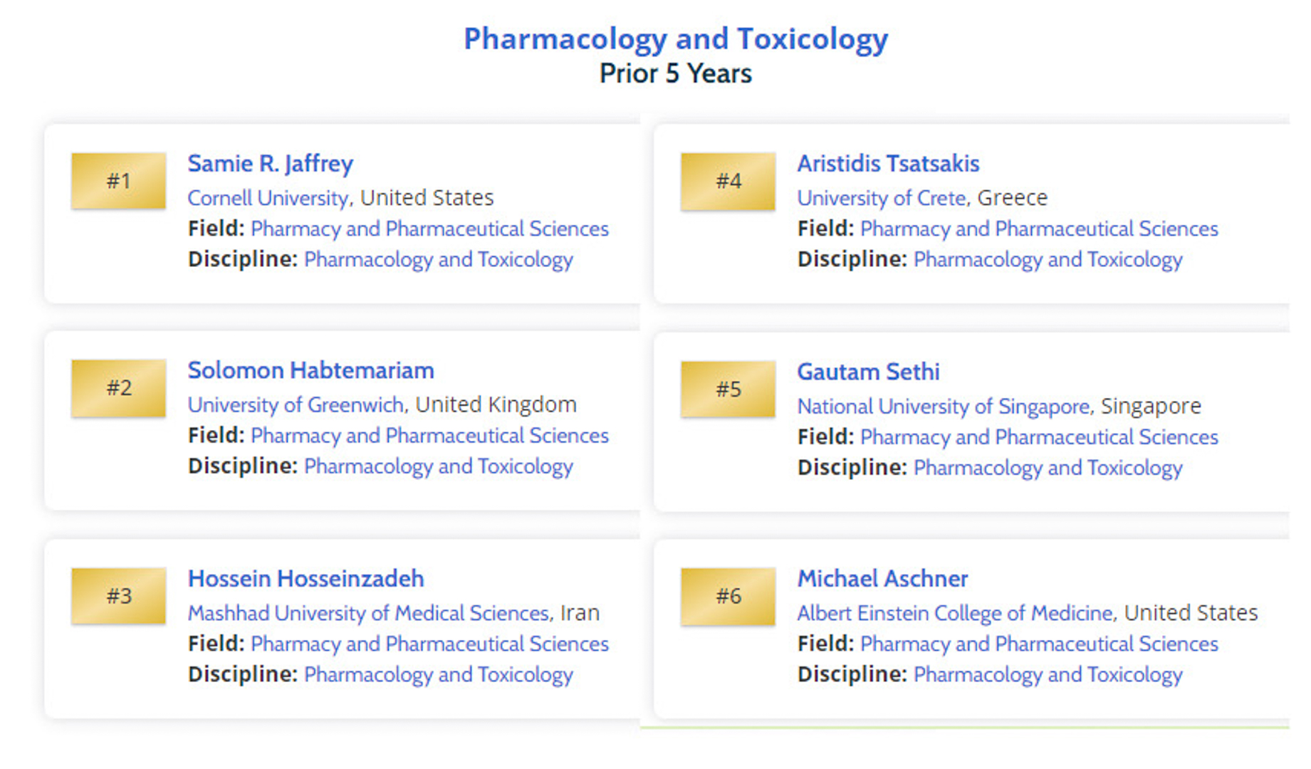 Το πλούσιο ιστορικό δημοσιεύσεών του, ο μεγάλος αντίκτυπος του έργου του και η εξαιρετική ποιότητα των επιστημονικών του συνεισφορών κατέταξαν τον Καθηγητή Αριστείδη Τσατσάκη στο κορυφαίο 0,05% όλων των επιστημόνων παγκοσμίως. Ο Καθηγητής έλαβε την 4η θέση στον κλάδο της Φαρμακολογίας & Τοξικολογίας και την 12η θέση στον τομέα της Φαρμακευτικής και Φαρμακευτικών Επιστημών λαμβάνοντας υπόψη τα τελευταία 5 χρόνια της καριέρας του, ενώ για το σύνολο του έργου του έλαβε την 46η θέση για την εξειδίκευσή του στον τομέα των φυτοφαρμάκων.