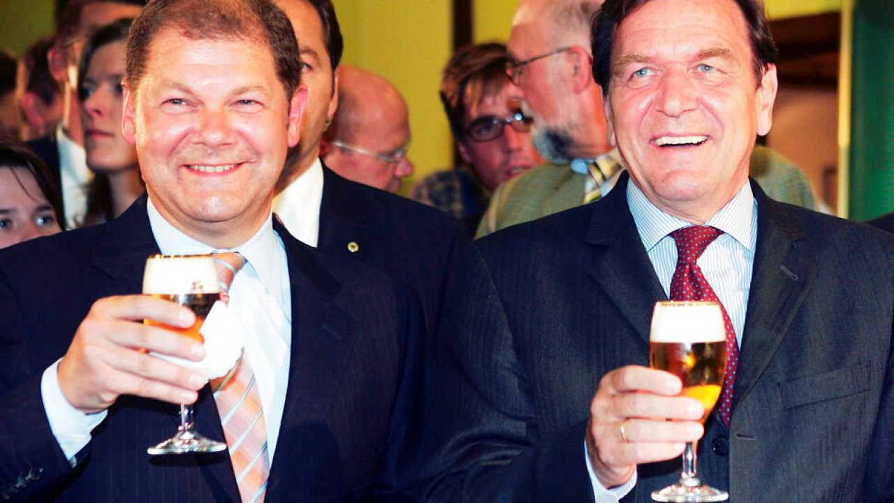 Ο πρώην καγκελάριος της Γερμανίας Γκέρχαρντ Σρέντερ επαίνεσε τον Όλαφ Σολτς (στη φωτογραφία μαζί το 2005) για την «ειρηνική στάση» του και την απροθυμία του να δώσει στην Ουκρανία τους μεγάλου βεληνεκούς πυραύλους Taurus.