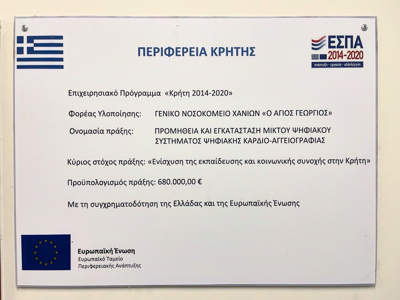 Ο σύγχρονος ιατροτεχνολογικός εξοπλισμός που έχει διατεθεί από το Περιφερειακό Πρόγραμμα Κρήτης για το Νοσοκομείο Χανίων είναι συνολικού κόστους 3,5 εκ. ευρώ και συμβάλλει καθοριστικά στην ενίσχυση της λειτουργίας τμημάτων αιχμής του νοσοκομείου.