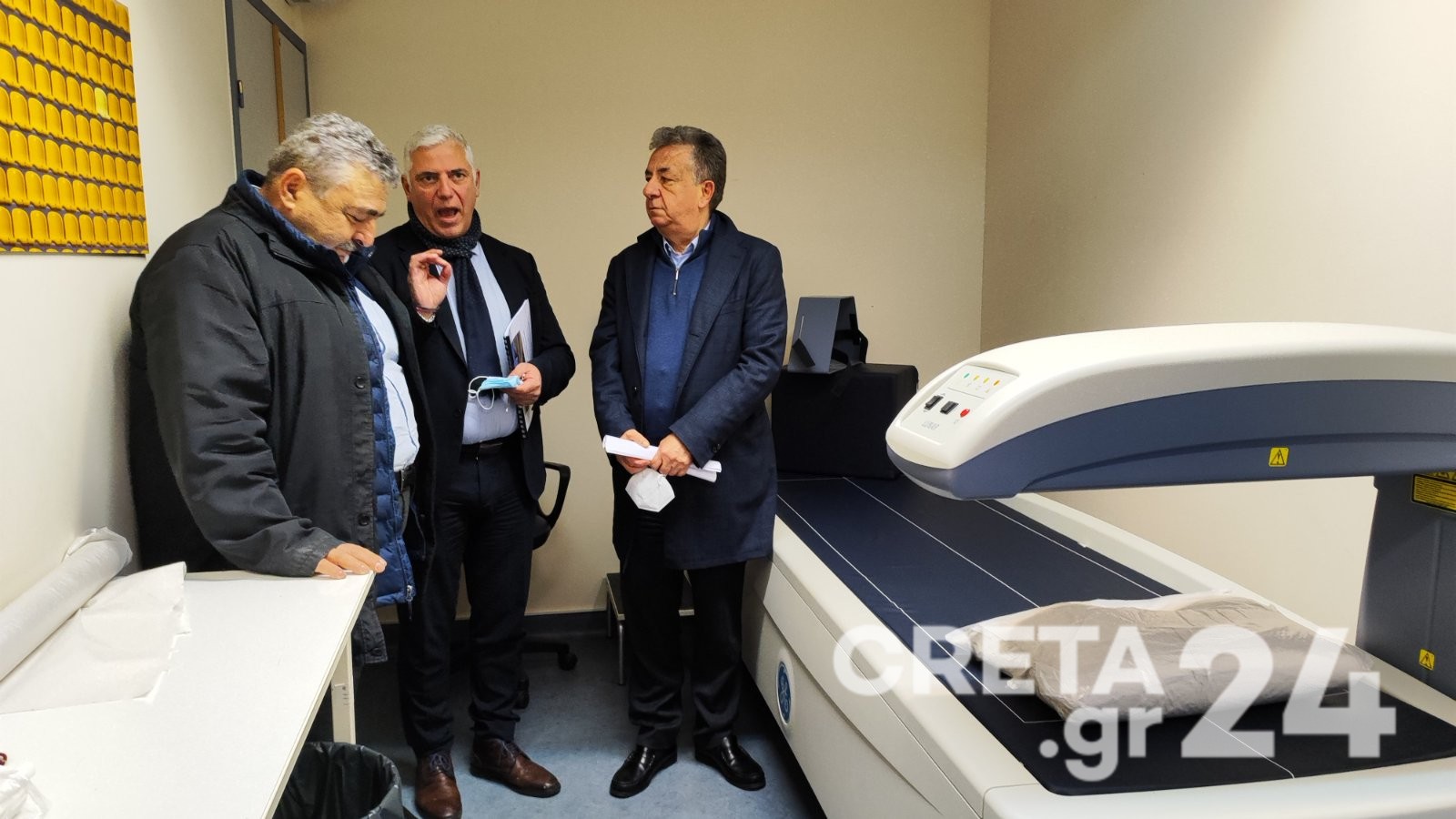 Το νοσοκομείο Χανίων επισκέφθηκε σήμερα ο Περιφερειάρχης Κρήτης Σταύρος Αρναουτάκης μαζί με τον Αντιπεριφερειάρχη Χανίων Νίκο Καλογερή και ξεναγήθηκαν από τον Διοικητή του ιδρύματος Γιώργο Μπέα στον ψηφιακό στεφανιογράφο και τη νέα Γάμα κάμερα, μηχανήματα που αναβαθμίζουν σε πολύ υψηλό επίπεδο τις παρεχόμενες υπηρεσίες στο νοσοκομείο Χανίων και συνδράμουν στην εξυπηρέτηση των πολιτών χωρίς να χρειαστεί να μετακινηθούν για σημαντικά ιατρικά ζητήματα όπως η εμφύτευση βηματοδότη.