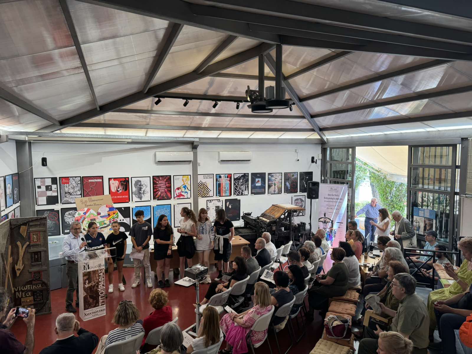 Στο χαιρετισμό του ο Σταύρος Αρναουτάκης αναφέρθηκε στην πολύπλευρη προσφορά του Γιάννη και της Ελένης Γαρεδάκη μέσα από το Μουσείο Τυπογραφίας και των δράσεων που αναπτύσσει το Μουσείο, επισημαίνοντας πως πρόκειται για σημαντική προσφορά που θα πρέπει να συνεχιστεί για πολλά χρόνια, όχι μόνο γιατί προσδίδει σημασία για όσα γίνονται στο νησί αλλά για την προστιθέμενη αξία που προκύπτει για όλη την Ελλάδα.