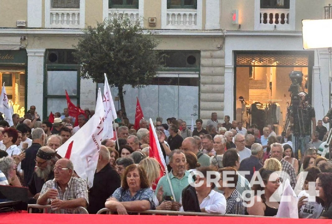 Στην Πλατεία του Αγίου Τίτου στο Ηράκλειο πραγματοποιήθηκε απόψε η κεντρική προεκλογική ομιλία του Προέδρου του ΣΥΡΙΖΑ, Στέφανου Κασσελάκη.