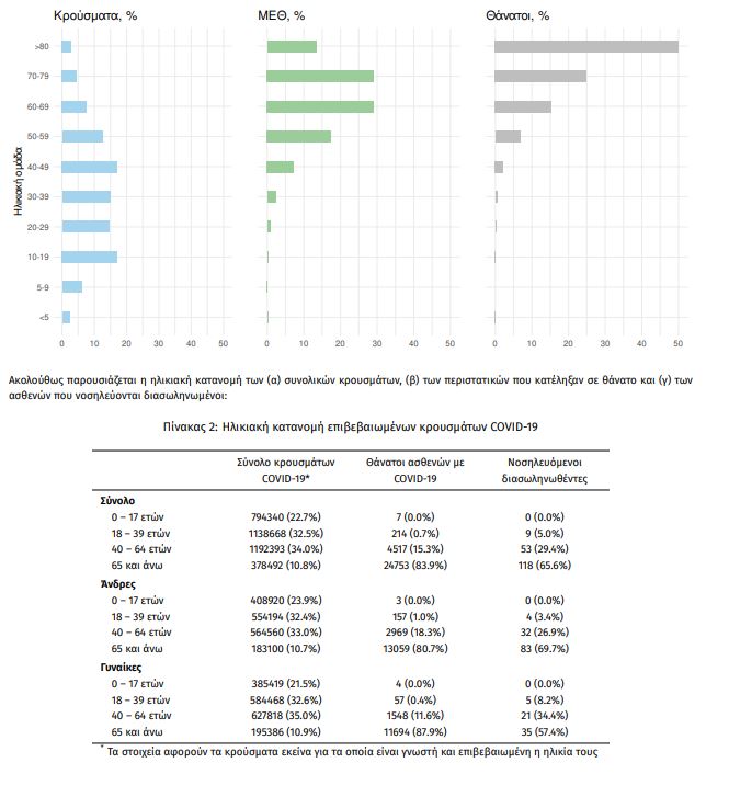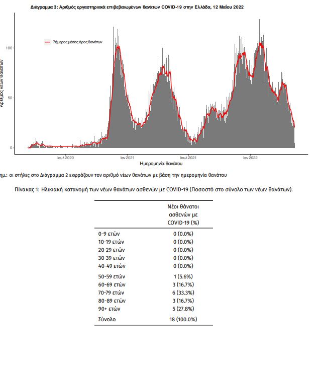 Οι νέοι θάνατοι ασθενών με COVID-19 είναι 18, ενώ από την έναρξη της επιδημίας έχουν καταγραφεί συνολικά 29.491 θάνατοι. Το 95.6% είχε υποκείμενο νόσημα ή/και ηλικία 70 ετών και άνω.