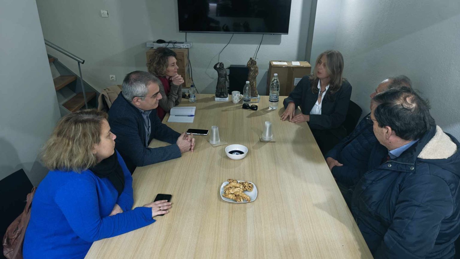 Λίγο αργότερα ο ευρωβουλευτής του ΚΚΕ επισκέφθηκε το Δημαρχείο Χναίων, όπου συναντήθηκε με τον Δήμαρχο Παναγιώτη Σημανδηράκη.