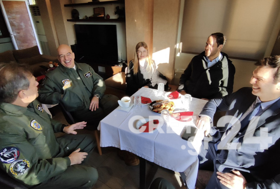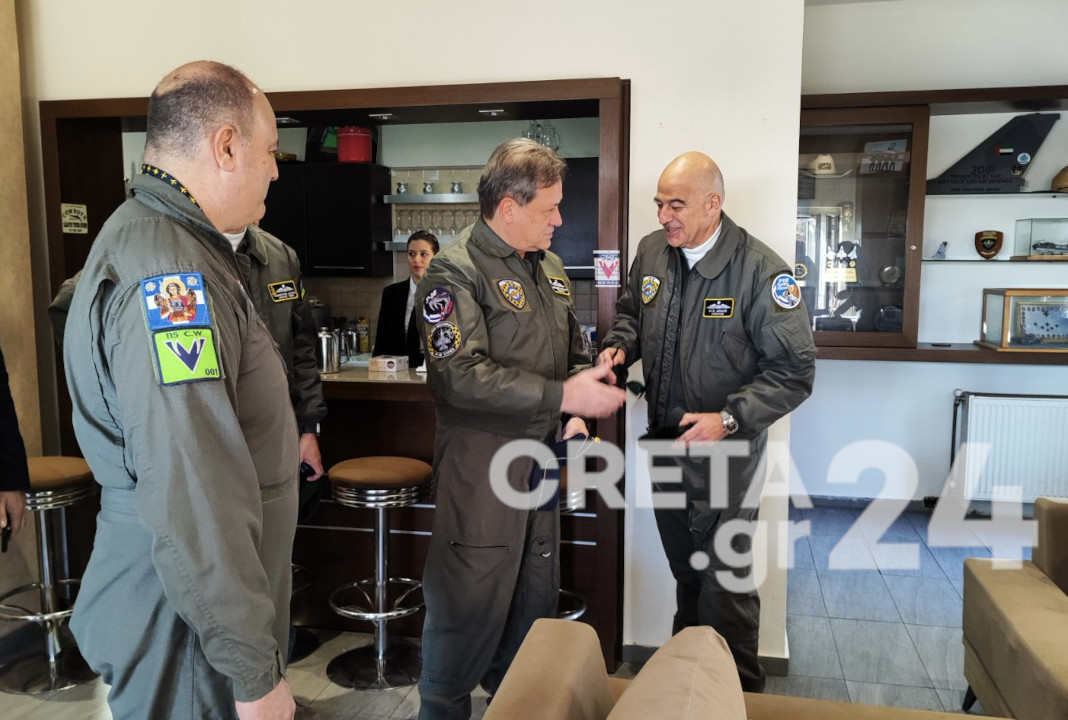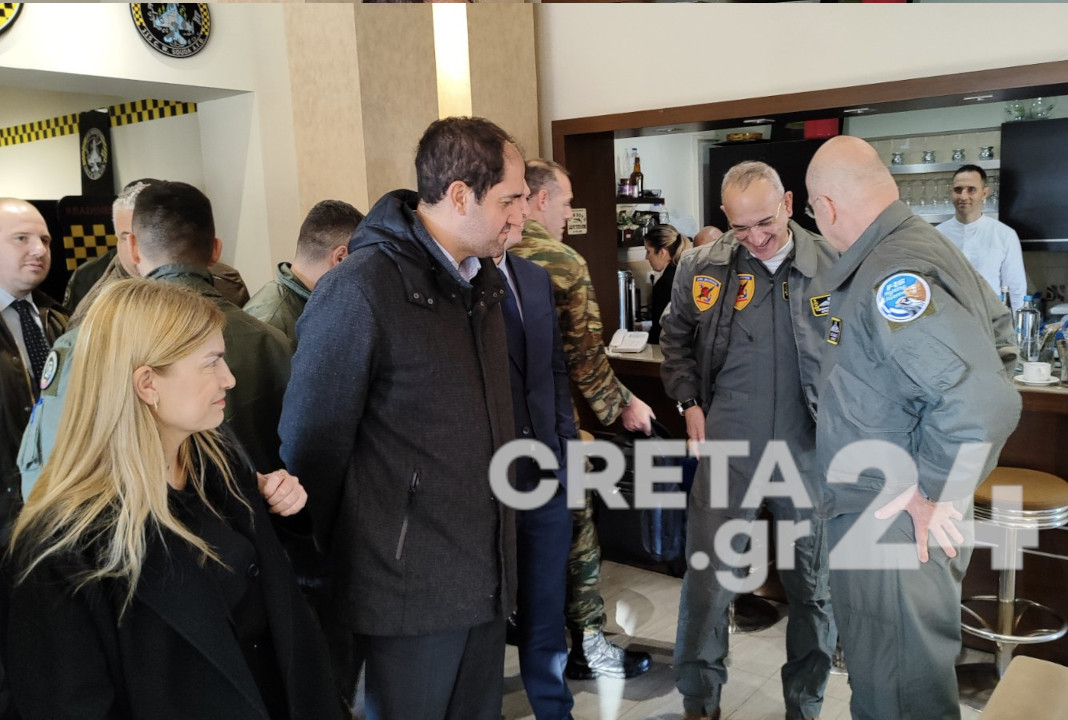 Τον υπουργό, τον οποίο συνοδεύουν ο Υφυπουργός Εθνικής Άμυνας Γιάννης Κεφαλογιάννης, οι βουλευτές Χανίων Σέβη Βολουδάκη και Αλέξανδρος Μαρκογιαννάκης και υπηρεσιακοί παράγοντες του Υπουργείου, υποδέχτηκε ο αρχηγός ΓΕΑ και διοικητής της 115 Πτέρυγας Μάχης, Σμηναγός Χρήστος Γρηγορούδης.