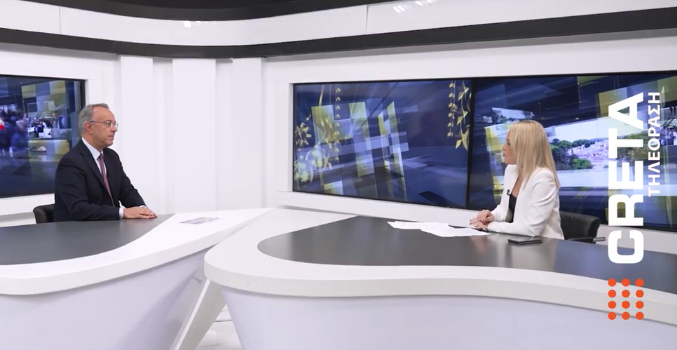 Για τα σημαντικά έργα υποδομών στην Κρήτη, μίλησε στην εκπομπή Update της Τηλεόρασης CRETA και την Σώτια Πεντεδήμου ο Υπουργός Υποδομών και Μεταφορών Χρήστος Σταϊκούρας, ο οποίος βρέθηκε στην Κρήτη στο πλαίσιο του συνεδρίου που πραγματοποιήθηκε νωρίτερα το μεσημέρι της Πέμπτης στο Ρέθυμνο, παρουσία του πρωθυπουργού Κυριάκου Μητσοτάκη και κυβερνητικών στελεχών.