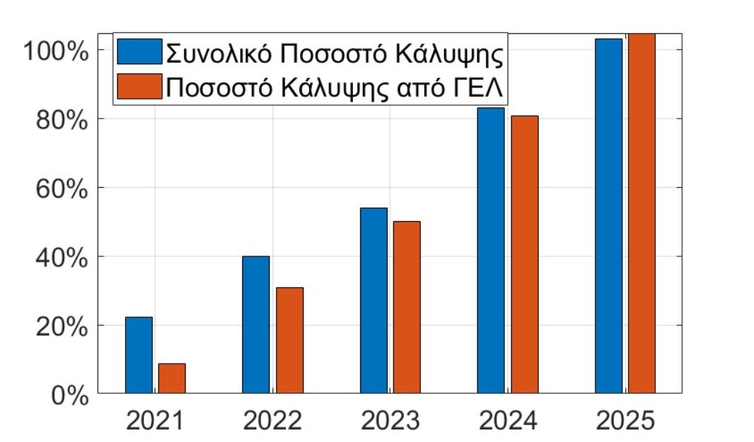 Σχήμα 1. Το Ποσοστό κάλυψης των θέσεων του Τμήματος από το 2021 μέχρι και το 2025.