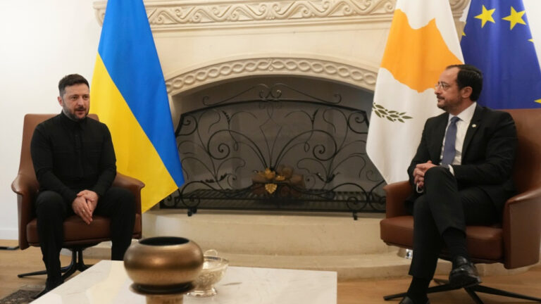 Η Κύπρος ανέλαβε την εκ περιτροπής προεδρία της Ευρωπαϊκής Ένωσης την Τετάρτη, σηματοδοτώντας την έναρξη της εξάμηνης θητείας της με μια συνάντηση στη Λευκωσία, στην οποία παρέστησαν ο Πρόεδρος της Ουκρανίας Βολοντίμιρ Ζελένσκι, η Πρόεδρος της Ευρωπαϊκής Επιτροπής Ούρσουλα φον ντερ Λάιεν και ο Πρόεδρος του Ευρωπαϊκού Συμβουλίου Αντόνιο Κόστα, σημειώνει το Reuters.