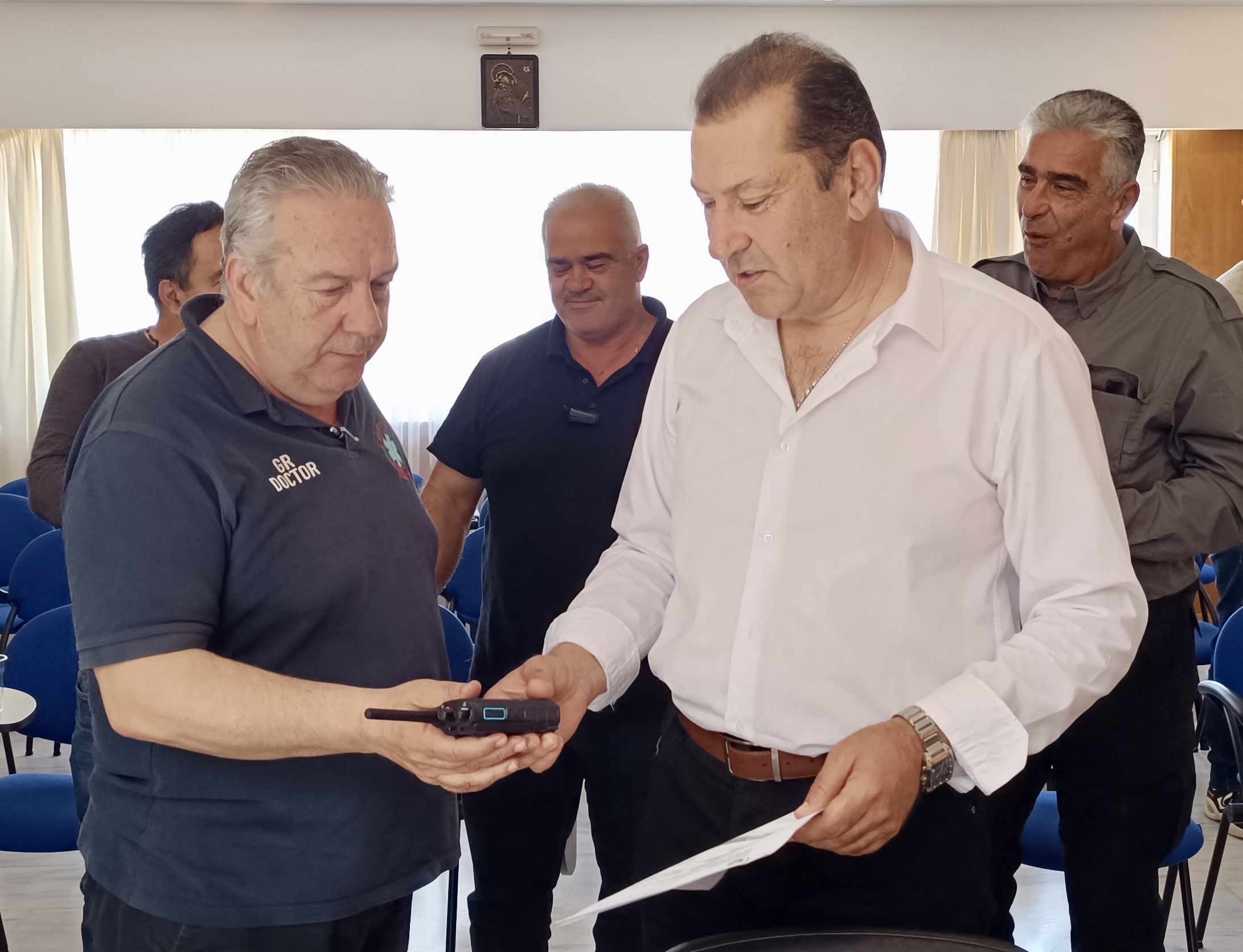 Στο πλαίσιο της συνεδρίασης μάλιστα, ο κ. Κατσαμποξάκης παρέδωσε στα μέλη του ΤΕΣΟΠ, ασύρματους τεχνολογίας TETRA, προκειμένου να υπάρχει άμεση και απρόσκοπτη επικοινωνία στο πεδίο μεταξύ όλων των εμπλεκόμενων σε περίπτωση έκτακτης ανάγκης. Το νέο σύστημα επικοινωνίας μάλιστα, αναμένεται να δοκιμαστεί στο πεδίο την ερχόμενη εβδομάδα, στο πλαίσιο προγραμματισμένης άσκησης.
