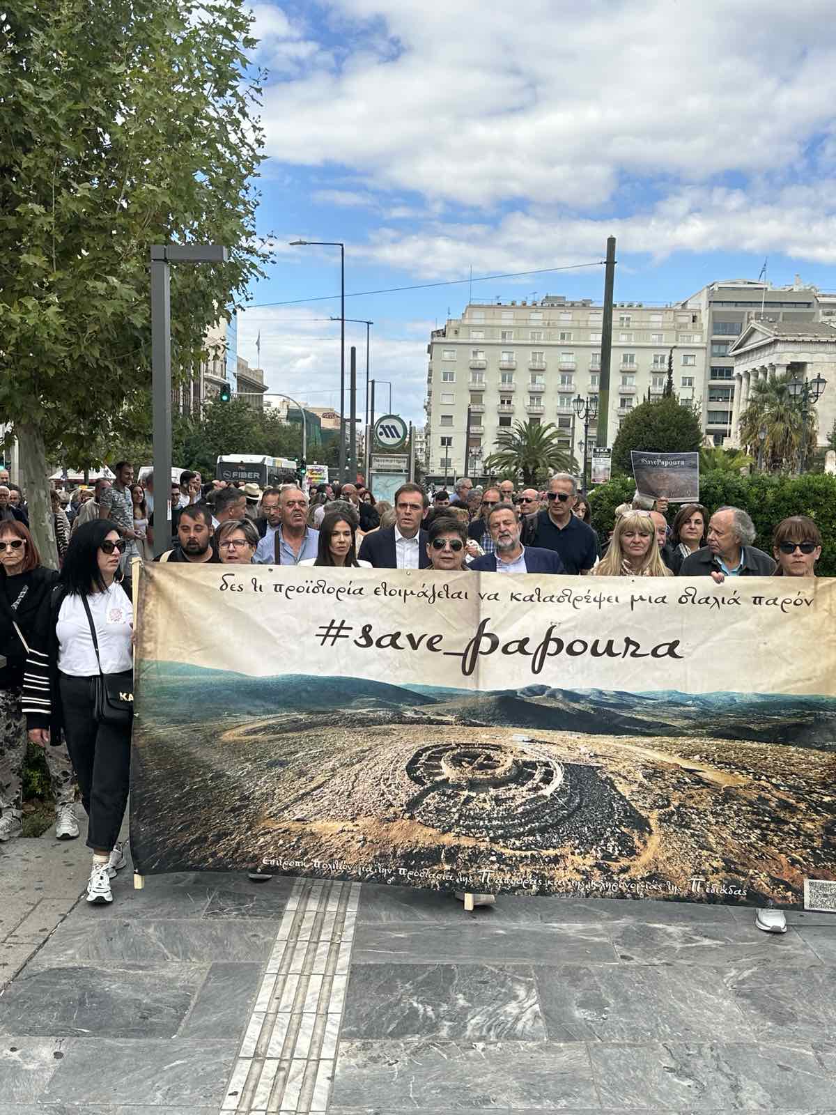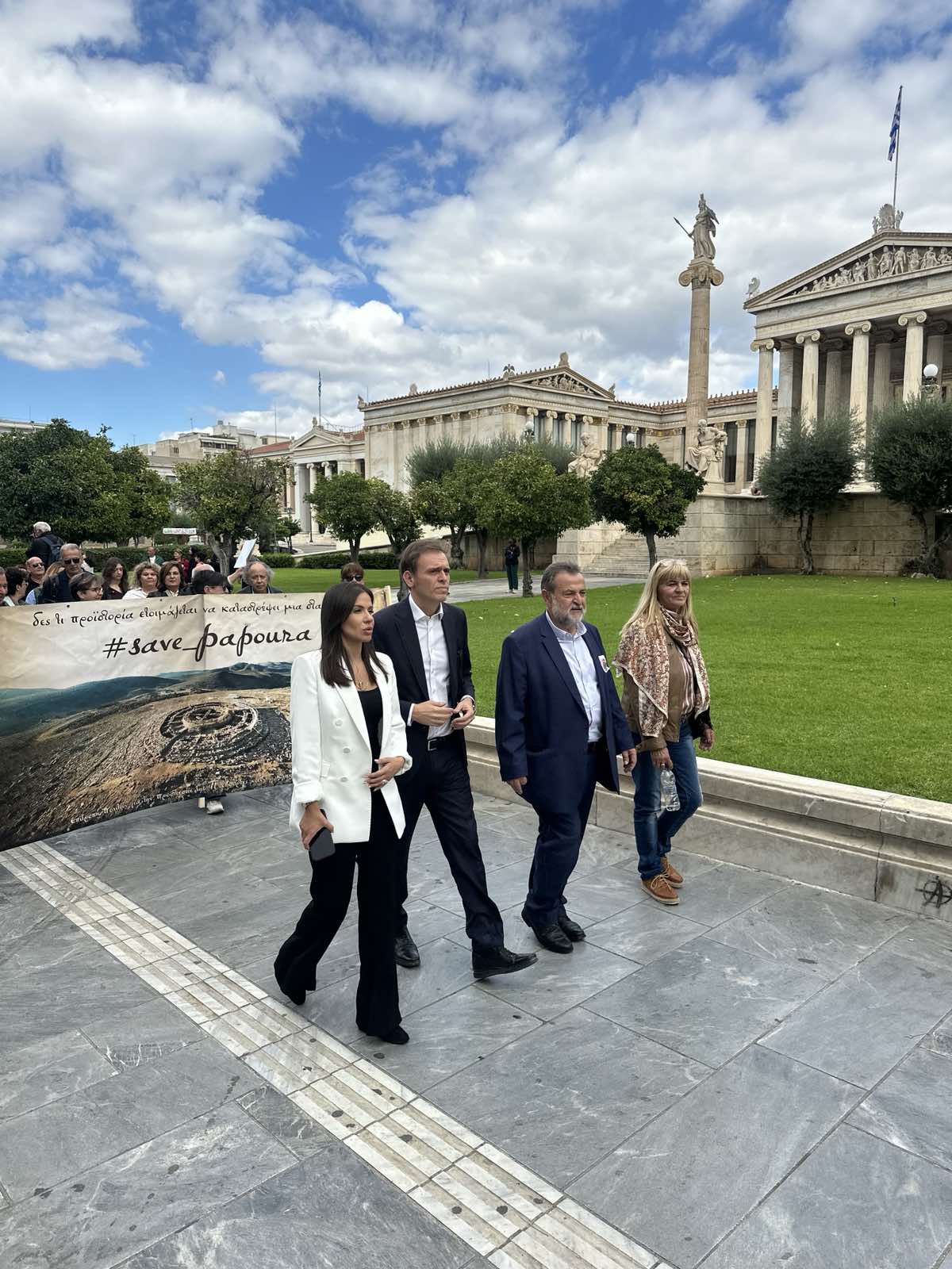 Στην εκδήλωση παρουσίασης της ταυτότητας του μνημείου που αποκαλύφθηκε στον Λόφο Παπούρας αλλά και στην πορεία προς το Σύνταγμα που ακολούθησε, με αίτημα την προστασία του μνημείου, έλαβε μέρος η βουλευτής Ηρακλείου ΠΑΣΟΚ, Ελένη Βατσινά.
