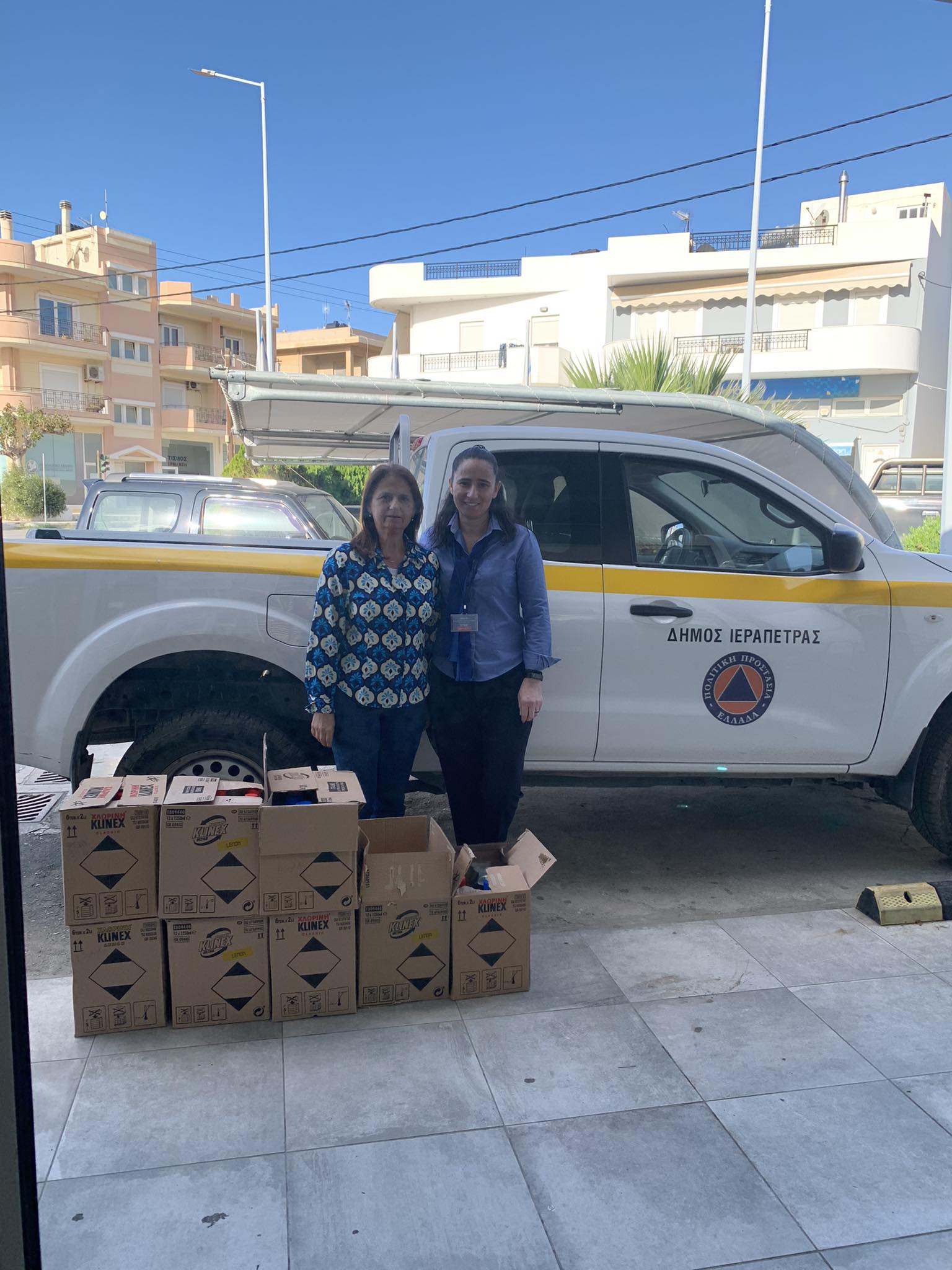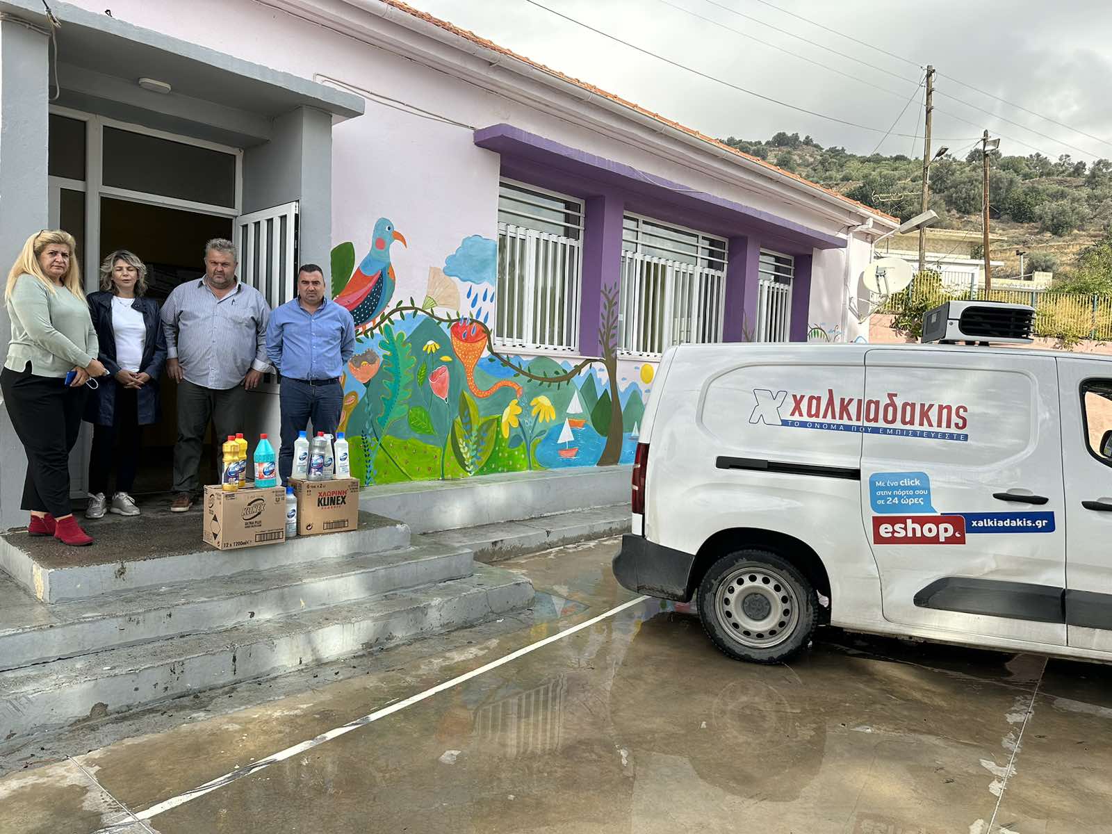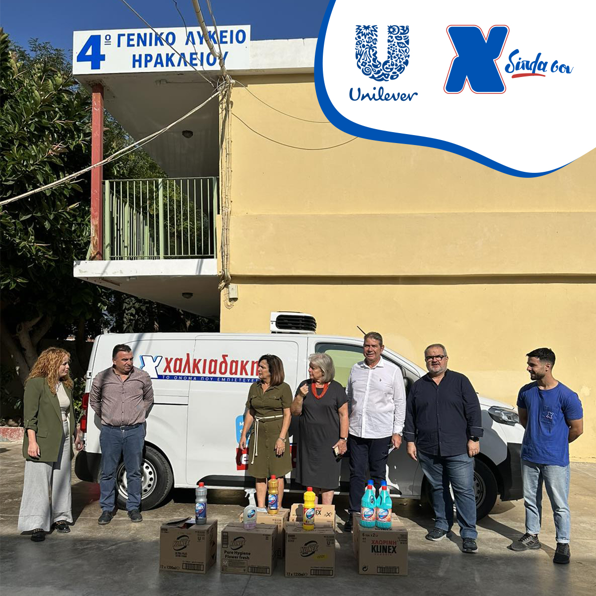 Ειδικότερα, έπειτα από πρωτοβουλία των Super Markets Χαλκιαδάκης, παραδόθηκαν στους υπευθύνους των σχολείων καθαριστικά Klinex (χλωρίνες, πολυκαθαριστικά, υγρά πατώματος και επιφανειών), τα οποία θα καλύψουν τις άμεσες ανάγκες των σχολείων. Τα προϊόντα παρέλαβαν από τον εκπρόσωπο της Ελαϊς- Unilever κ. Κώστα Ρουμπάκη και την εκπρόσωπο της Χαλκιαδάκη Α.Ε. κ. Βιβή Ξυπάκη οι Δ/ντες των σχολείων σε: