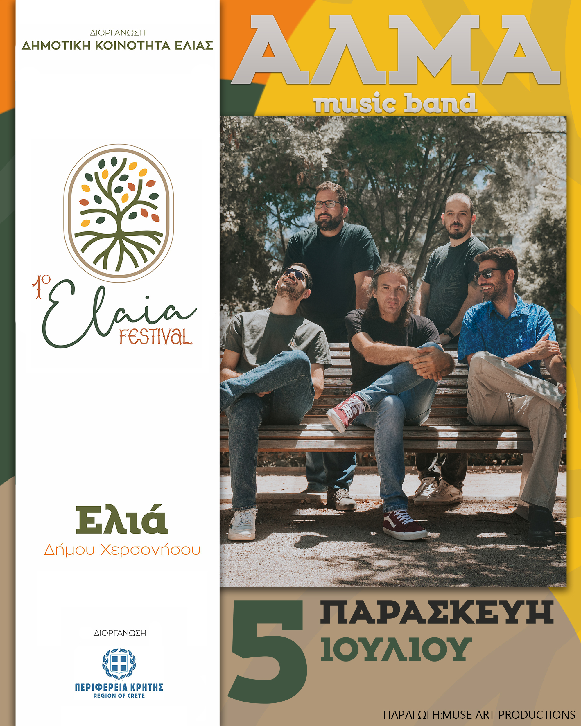 Την Παρασκευή 5 Ιουλίου ο Δημήτρης Χουρδάκης και οι Alma music band ανοίγουν την αυλαία του 1ου Φεστιβάλ Ελιάς , στην δημοτική κοινότητα Ελιάς Πεδιάδος του Δήμου Χερσονήσου.