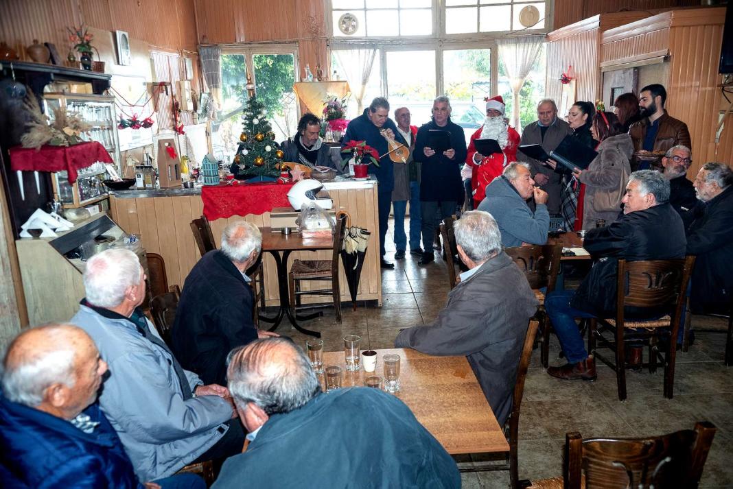 Αφετηρία της δράσης ήταν η εκκλησία, όπου την έκπληξη έκανε ο Άγιος Βασίλης μοιράζοντας δώρα στα παιδιά και κεράσματα. Στη συνέχεια η ομάδα, με τη βοήθεια της Μαρίας Χουστουλάκη που διηύθυνε τη χορωδία και με τη συνοδεία οργάνων, συνέχισε την… καντάδα τραγουδώντας τα κάλαντα στα δρομάκια του χωριού, σε καφενεία και τοπικά μαγαζιά. Αποτέλεσμα της μικρής αυτής δράσης δεν ήταν παρά χαμόγελα, αγκαλιές και ευχές από μικρούς και μεγάλους.