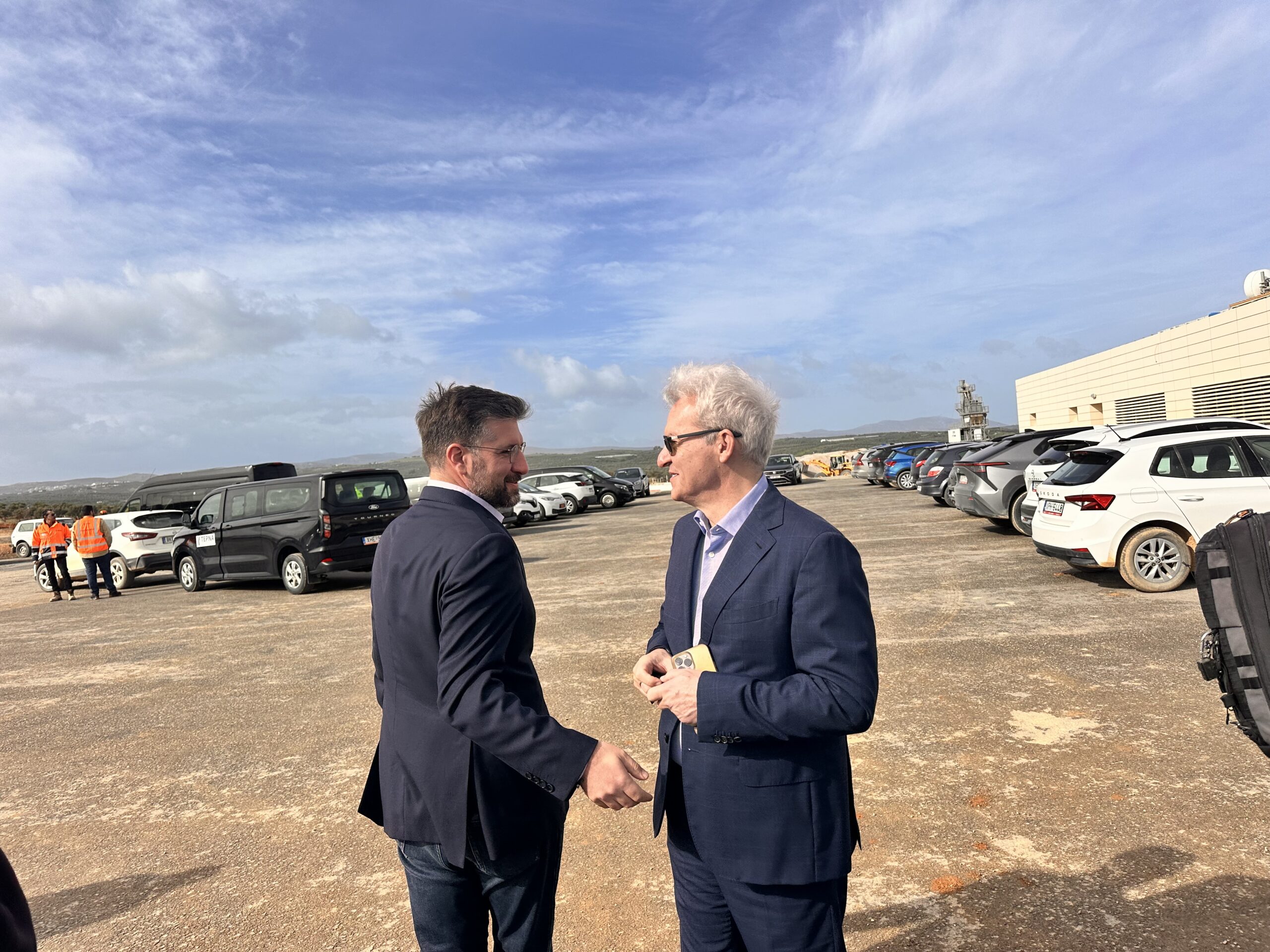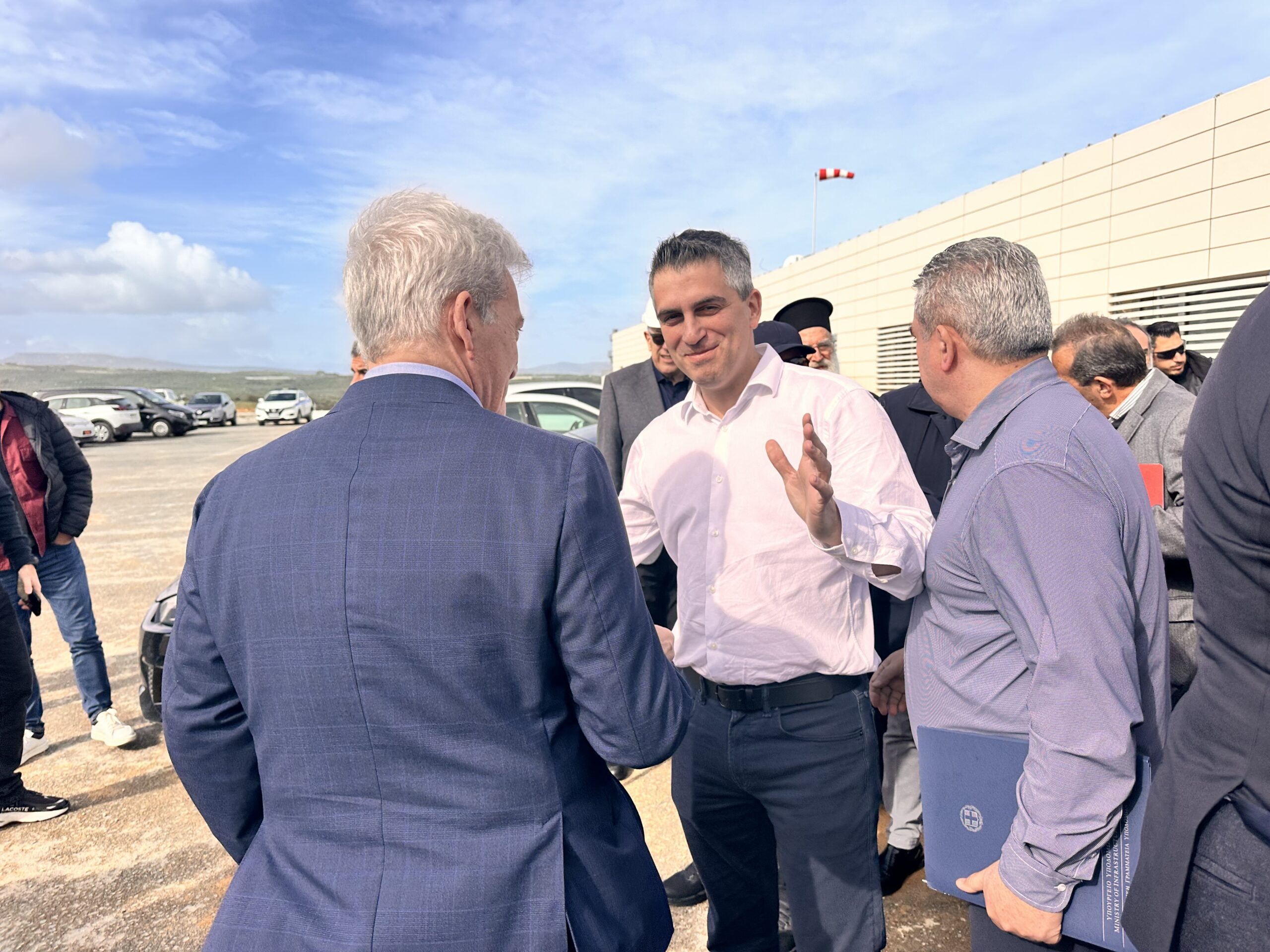 Στο εργοτάξιο του νέου αεροδρομίου στο Καστέλι έφτασε λίγο μετά τις 11 το πρωί ο πρωθυπουργός Κυριάκος Μητσοτάκης.
