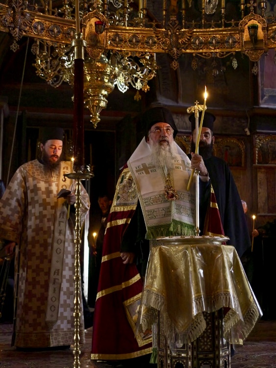 Το πρωί της Πέμπτης 23ης Οκτωβρίου ο Σεβασμιώτατος Αρχιεπίσκοπος Κρήτης κ.κ. Ευγένιος χοροστάτησε στην Ακολουθία του Όρθρου και στη συνέχεια προεξήρχε της Θείας Λειτουργίας, συλλειτουργούντων των Σεβασμιωτάτων Μητροπολιτών Νέας Κρήνης και Καλαμαριάς κ. Ιουστίνου, Ιεραπύτνης και Σητείας κ. Κυρίλλου, Σύμης κ. Χρυσοστόμου και του Θεοφιλέστατου Επισκόπου Παλμύρας κ. Ιωάννου. Πριν την Απόλυση τελέσθηκε το ιερό μνημόσυνο κατά την αγιορειτική τάξη στο κέντρο του Καθολικού, υπέρ αναπαύσεως της ψυχής του μακαριστού Γέροντος.