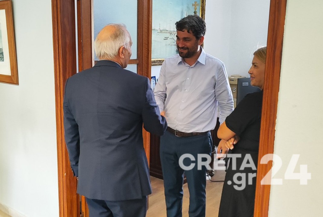 Τον Υφυπουργό Ναυτιλίας και Νησιωτικής Πολιτικής, Στέφανο Γκίκα υποδέχτηκε σήμερα, στο Δημαρχείο Χανίων, ο Δήμαρχος Χανίων, Παναγιώτης Σημανδηράκης μαζί με τον Πρόεδρο του Δημοτικού Συμβουλίου, Μανώλη Καραγιαννάκη, τον Πρόεδρο του Δημοτικού Λιμενικού Ταμείου, Μανώλη Κοτσιφάκη, και τους Αντιδημάρχους Οικονομικών και Ψηφιακής Πολιτικής Τάσος Αλόγλου και Καθαριότητας Περιβάλλοντος και Πρασίνου, Μιχάλη Τσουπάκη. Κατά τη διάρκεια της συνάντησης το παρών έδωσε η βουλευτής Χανίων, Σέβη Βολουδάκη καθώς και εκπρόσωποι άλλων βουλευτών του νομού.