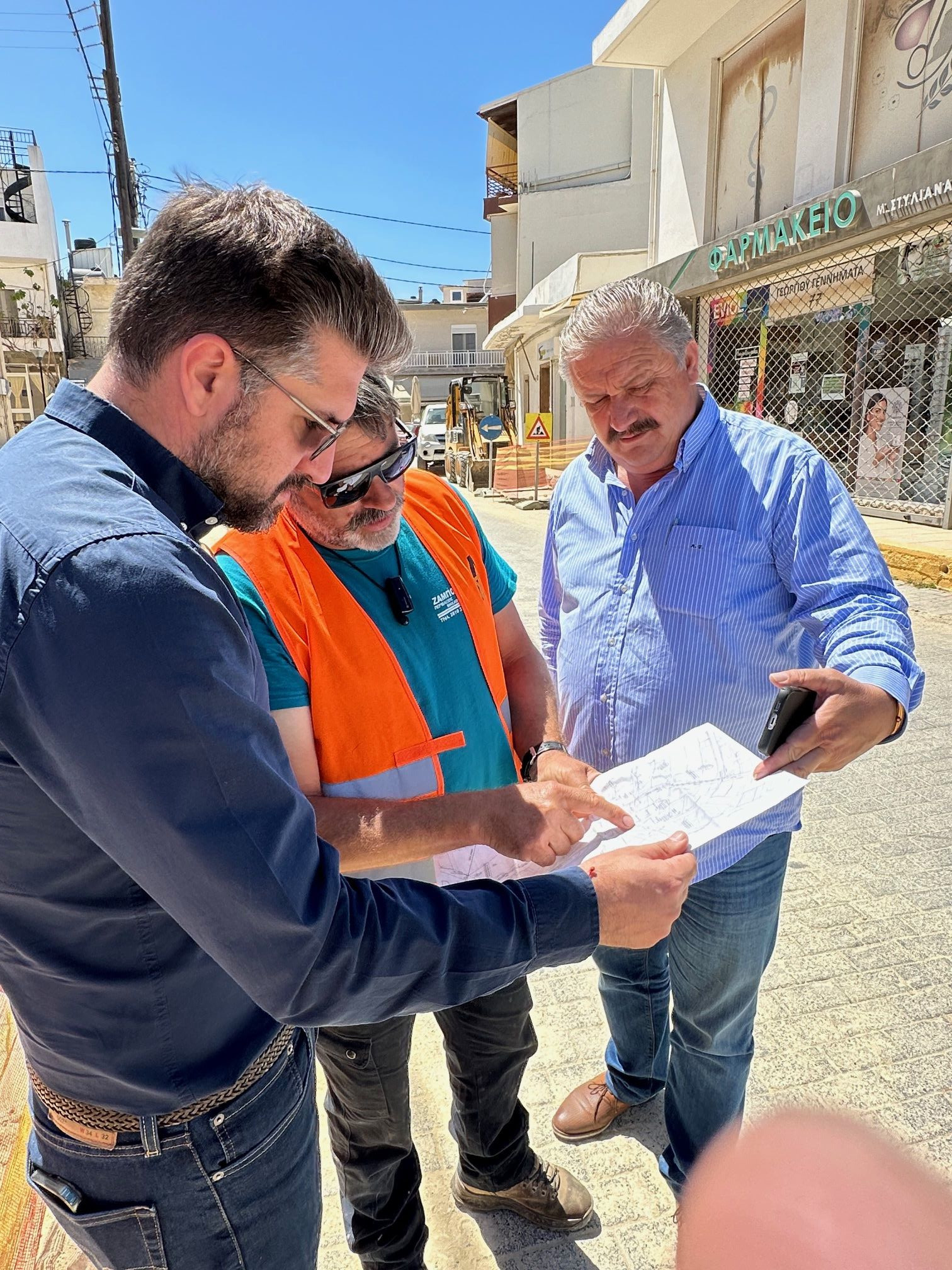 Ο Μενέλαος Μποκέας, μαζί με τον Αντιδήμαρχο Τεχνικών έργων Άρη Σαλούστρο και την Αντιδήμαρχο Παιδείας Μαρίνα Βογιατζή, είχαν την ευκαιρία να δουν από κοντά την πρόοδο των εργασιών και να συνομιλήσουν με κατοίκους και καταστηματάρχες για τα επόμενα στάδια του έργου ανάπλασης της πλατείας.