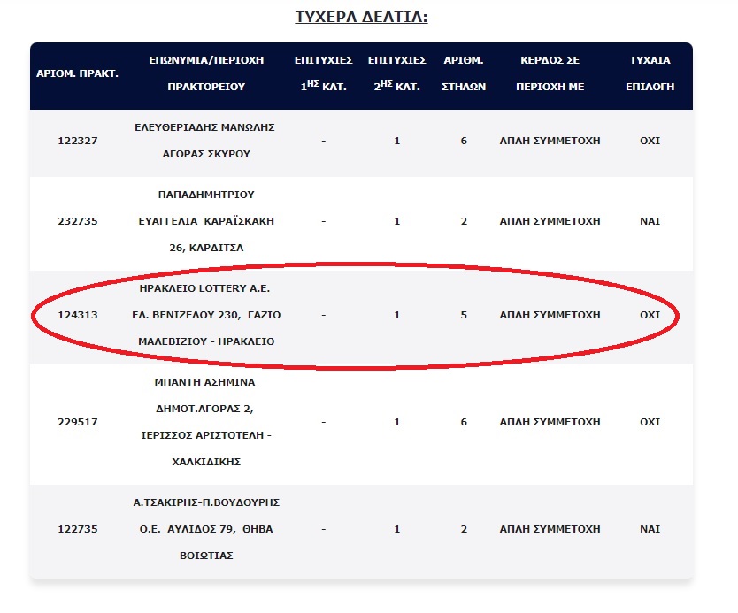 Το τυχερό δελτίο παίχτηκε σε πρακτορείο του ΟΠΑΠ στο που βρίσκεται στην Ελευθερίου Βενιζέλου στο Γάζι.