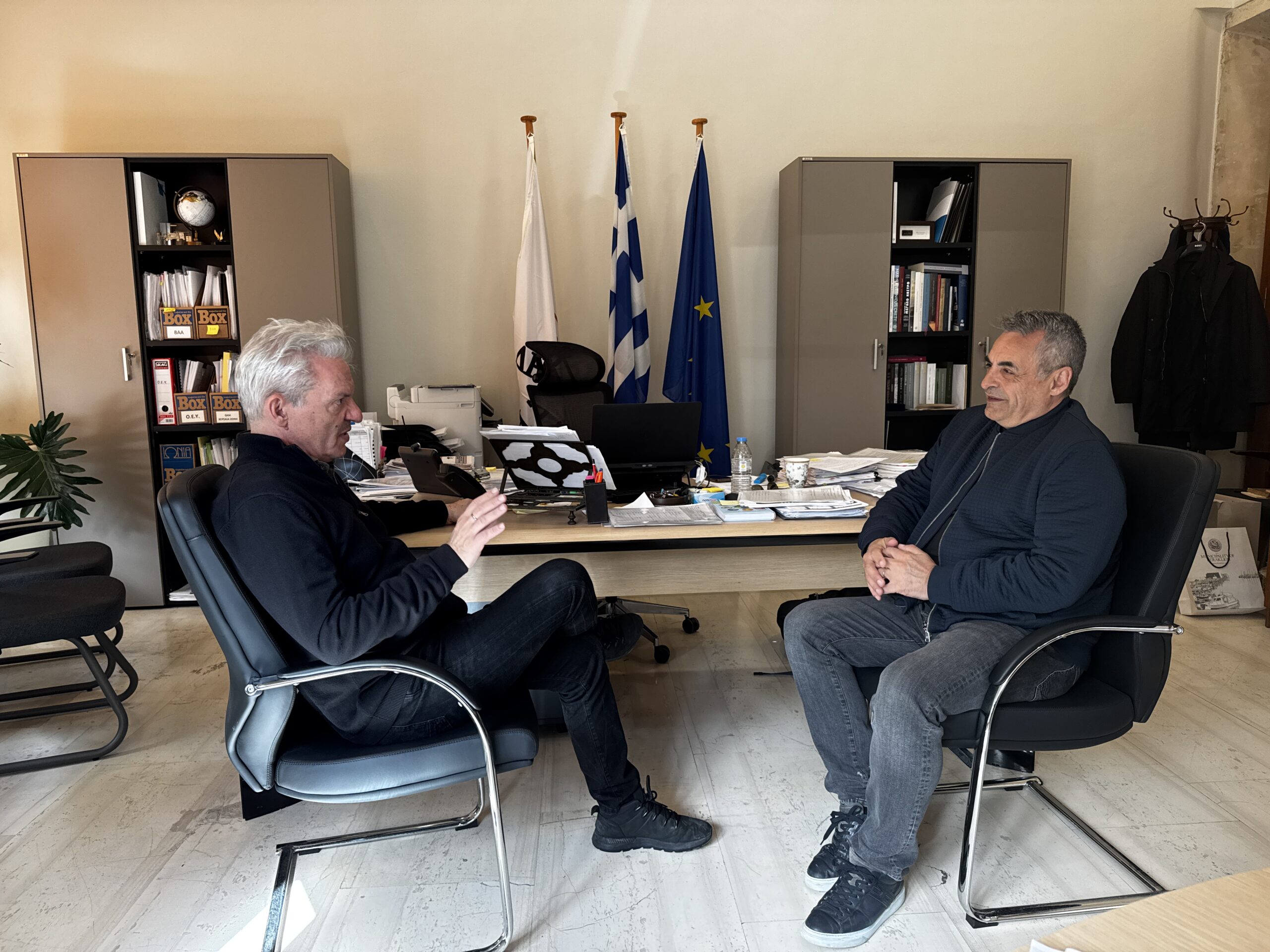 Τον Δήμαρχο Τρίπολης Κωνσταντίνο Τζιούμη, ο οποίος βρίσκεται στο Ηράκλειο για τον ημιτελικό του Αστέρα με τον ΟΦΗ, υποδέχθηκε στη Λότζια ο Δήμαρχος Ηρακλείου Αλέξης Καλοκαιρινός, το πρωί της Τρίτης 2 Απριλίου.
