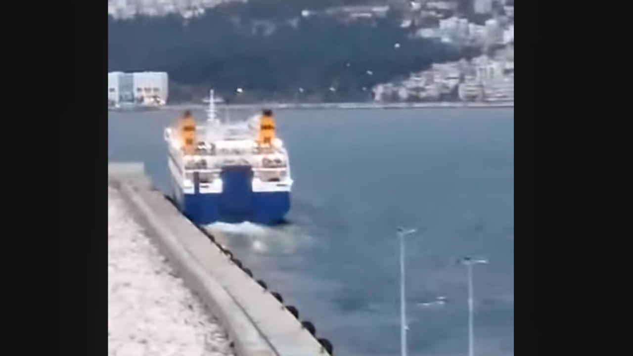 Το πλοίο σύρθηκε στον λιμενοβραχίονα λόγω των ισχυρών ανέμων που επικρατούσαν εκείνη τη στιγμή.