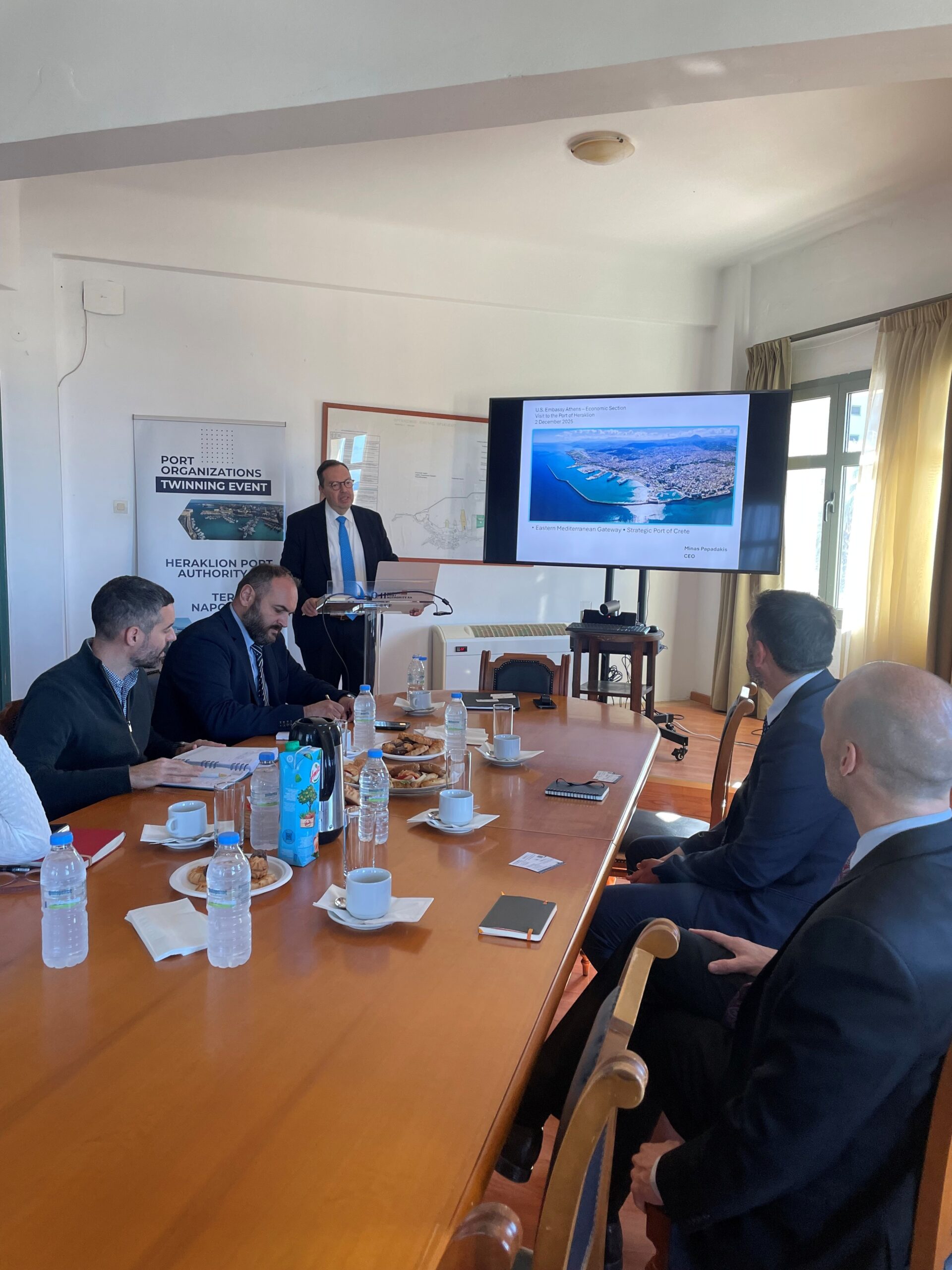 Αντιπροσωπεία του Οικονομικού Τμήματος της Πρεσβείας των Ηνωμένων Πολιτειών στην Αθήνα, με επικεφαλής τον κ. Brian Timm-Brock (Γ. Γραμματέας, Οικονομικό Τμήμα) και ο κ. Timothy Haynes (Αναπληρωτής Οικονομικός Σύμβουλος), επισκέφθηκε το Λιμάνι Ηρακλείου την Τρίτη 2 Δεκεμβρίου 2025.