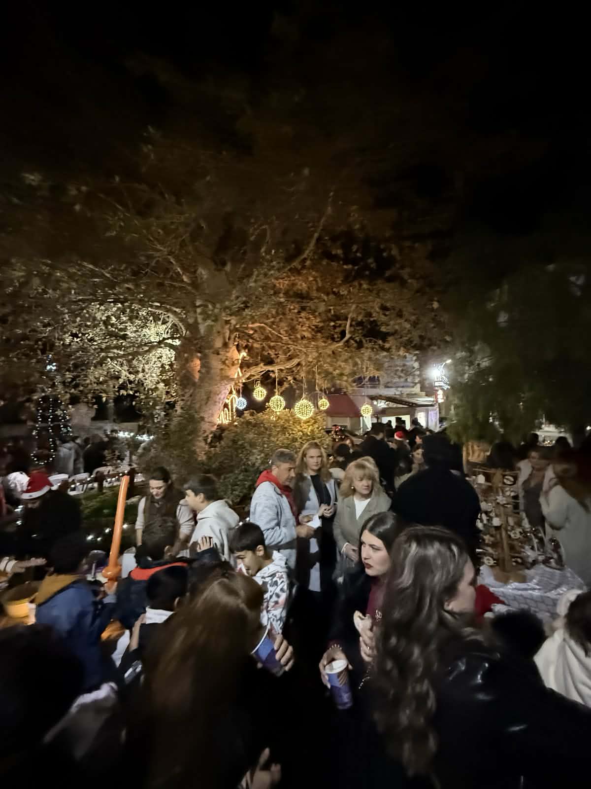 Μικροί και μεγάλοι που γέμισαν τη γραφική πλατεία είχαν την ευκαιρία να απολαύσουν κεράσματα με ζεστή σοκολάτα και διάφορα εδέσματα, να περιηγηθούν στο χριστουγεννιάτικο παζάρι, ενώ τα παιδιά διασκέδασαν με face painting και παρέλαβαν δωράκια.