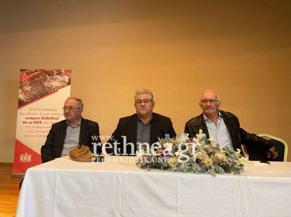Στην εκδήλωση που πραγματοποιείται στο Σπίτι του Πολιτισμού παραβρίσκονται μεταξύ άλλων, ο βουλευτής του ΚΚΕ Μανόλης Συντυχάκης, εκπρόσωποι της Λαϊκής Συσπείρωσης της Περιφέρειας Κρήτης Αλέκος Μαρινάκης, Νίκος Μανουσάκης , του δήμου Ρεθύμνου Μανούσος Μανουσογιάννης αλλά και μέλη της Τομεακής Επιτροπής του ΚΚΕ Ρεθύμνου.