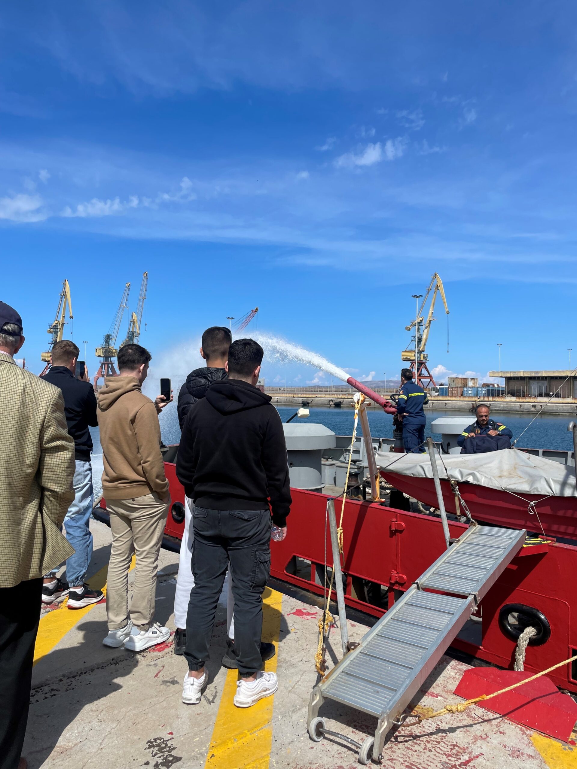 Εκτενή ήταν η παρουσίαση των υπηρεσιών από τον Διοικητή του 3ου Πυροσβεστικού Σώματος κ. Χαρτούδη, που μετά το καλωσόρισμα προέβη σε μια πλήρη ανάλυση των αρμοδιοτήτων και υπηρεσιών του κλάδο και ενημέρωσε για τα σχέδια αντιμετώπισης καταστάσεων έκτακτης ανάγκης σε περίπτωση ατυχημάτων ή διαρροών. Μέσα από την βιωματική προσέγγιση (με επίδειξη σβησίματος πυρκαγιάς πλοίου ή οποιουδήποτε πλεούμενου, με διοχέτευση και εκτόξευση νερού από το Πυροσβεστικό Σκάφος), οι μαθητές κατανόησαν τις δυσκολίες και τους κινδύνους αλλά και τη σημαντικότατη και σπουδαία προσφορά στο κοινωνικό σύνολο σε θέματα και ζητήματα πρόληψης και αντιμετώπισης πυρκαγιών και φυσικών καταστροφών.