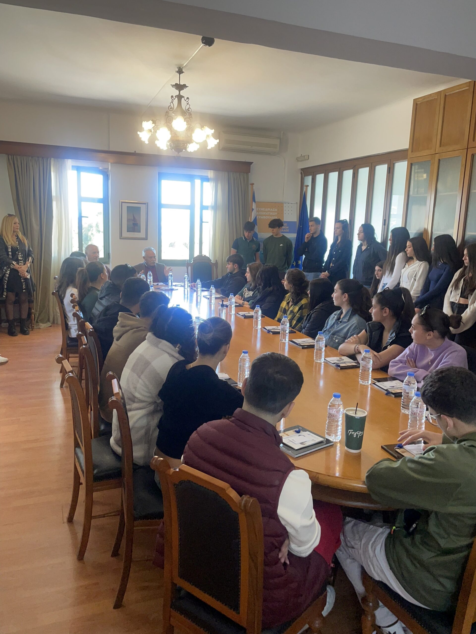 Το πρωινό ξεκίνησε με το καλωσόρισμα των παιδιών και των συνοδών καθηγητών στην αίθουσα συνεδριάσεων του ΟΛΗ όπου τους υποδέχθηκαν ο Πρόεδρος του ΟΛΗ κ. Ιωάννης Βαρδαβάς, ο Διευθυντής Λιμενικών Υπηρεσιών του ΟΛΗ κ. Εμμανουήλ Φραγκάκης, η Υπεύθυνη Κρουαζιέρας κ. Κυριακή Καμπανά και η Ειδική Σύμβουλος κ. Ελένη Τσαντηράκη.