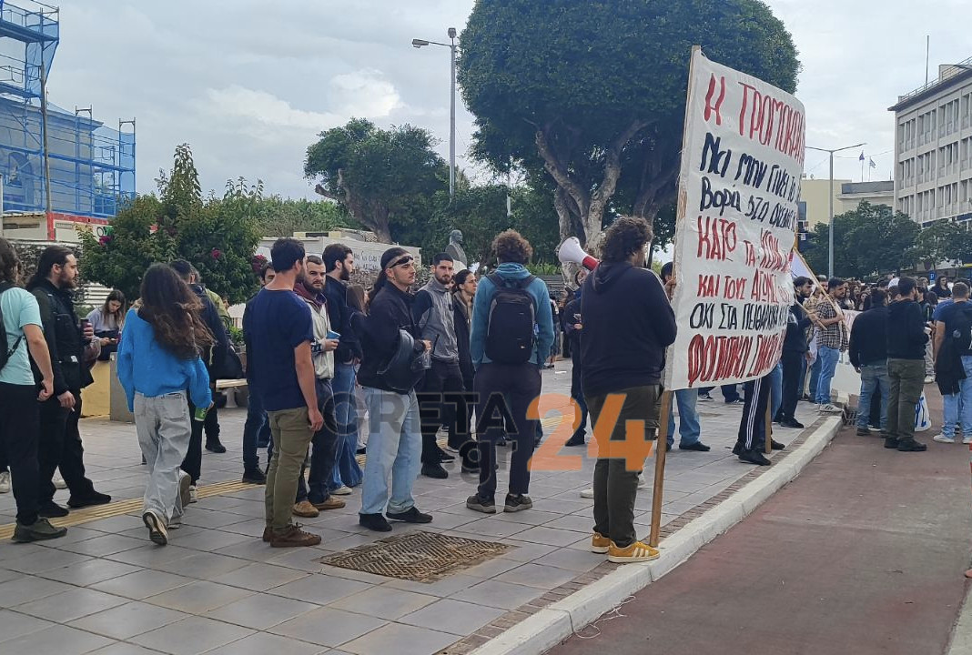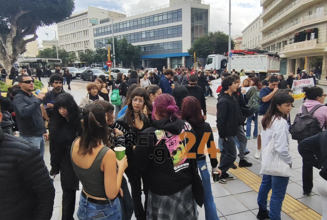 Στη συγκέντρωση έδωσαν το παρών και φοιτητές του Πολυτεχνείου Κρήτης με βασικά αιτήματα φοιτητική μέριμνα αλλά και την κατάργηση του νέου πειθαρχικού.