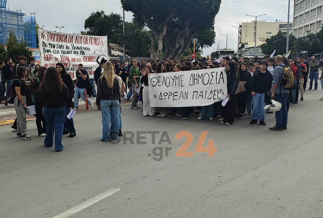 Πανεκπαιδευτικό συλλαλητήριο πραγματοποιήθηκε το πρωί της Πέμπτης στο Ηράκλειο, όπου εκπαιδευτικοί, γονείς, μαθητές και φοιτητές βγήκαν στους δρόμους διαμαρτυρόμενοι για την υποβάθμιση της παιδείας.