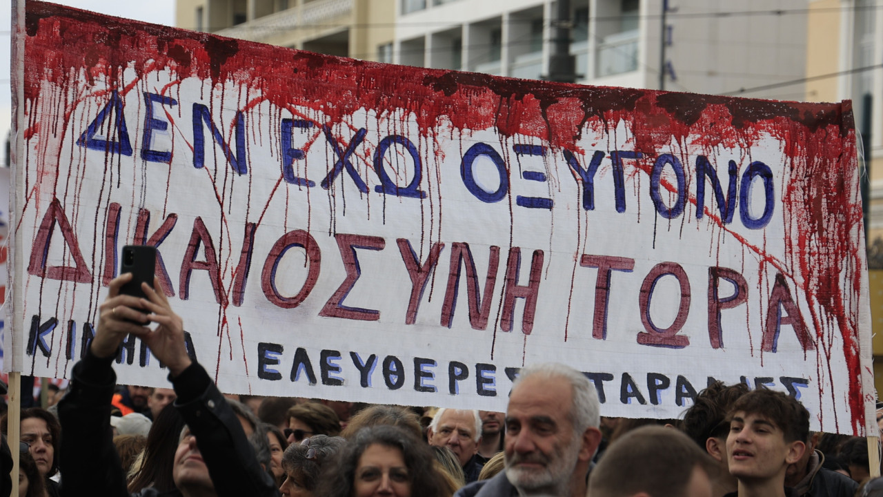Εν μέσω βροχής, πλήθος κόσμου συγκεντρώθηκε σήμερα στην Πλατεία Ελευθερίας στη Λευκωσία για να διαμαρτυρηθεί, με αφορμή τη συμπλήρωση δύο χρόνων από το σιδηροδρομικό δυστύχημα των Τεμπών, που οδήγησε στον θάνατο 57 ανθρώπων.